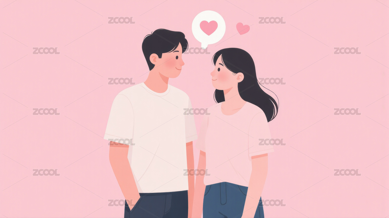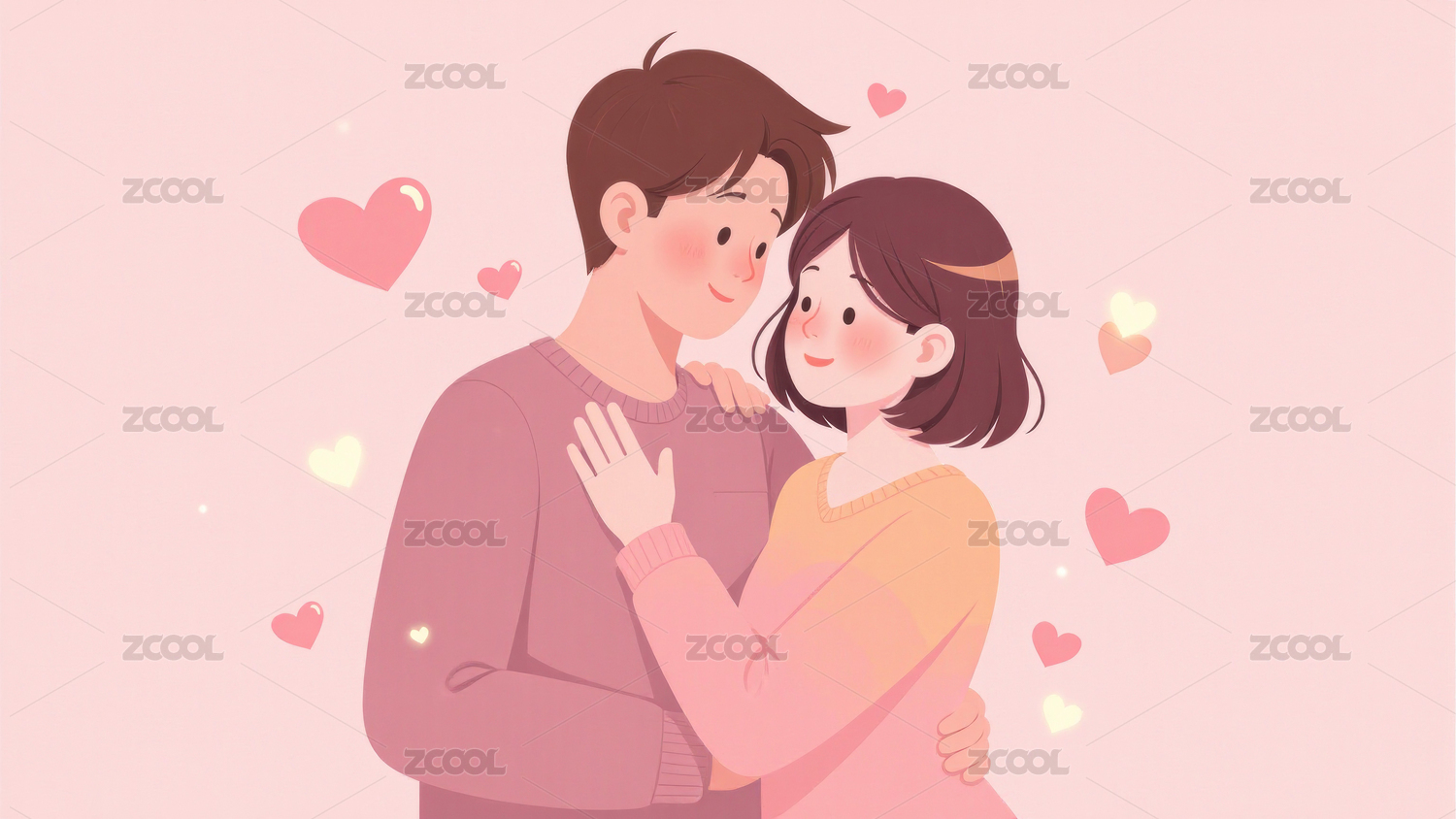 甜蜜情侣卡通插画