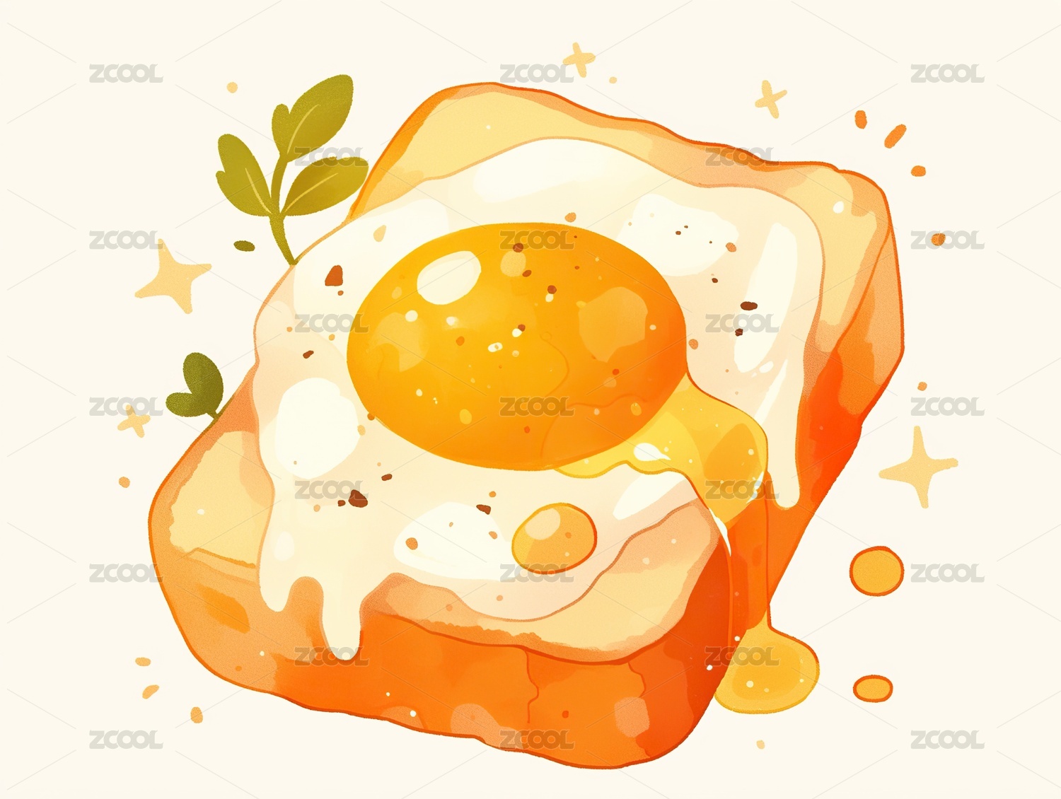 插画,美食,食品,饮食,早餐,手绘,面包,煎蛋,烘焙,鸡蛋