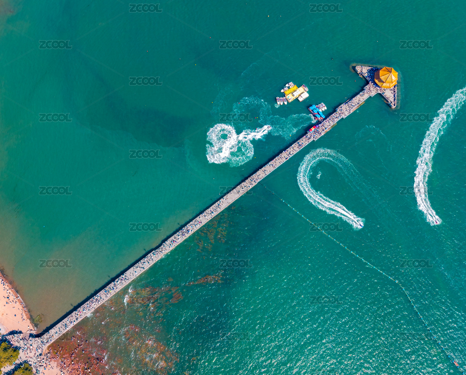 山东省青岛市地标性建筑栈桥城市建筑风光