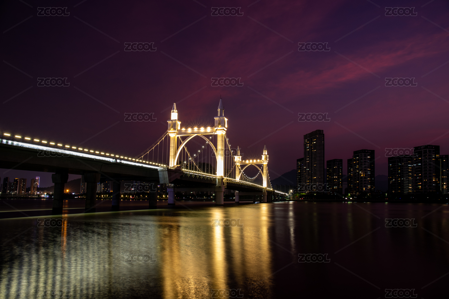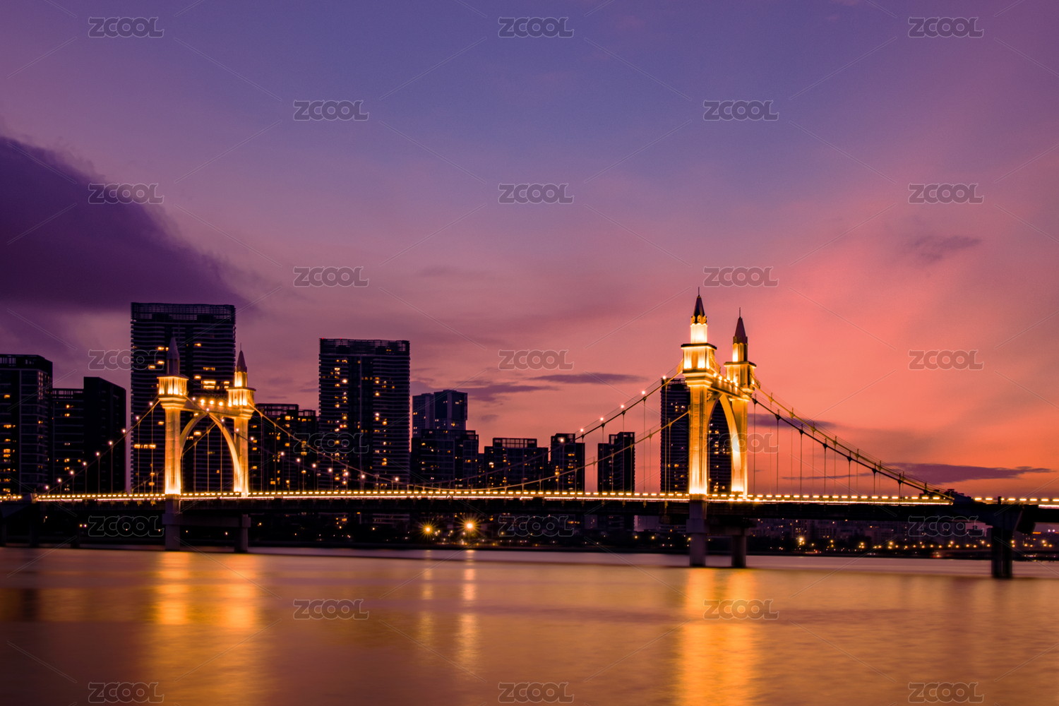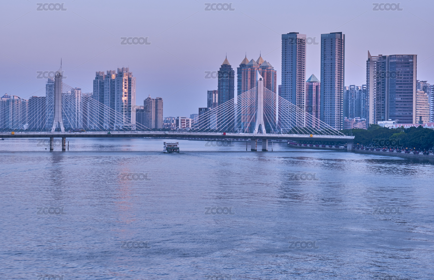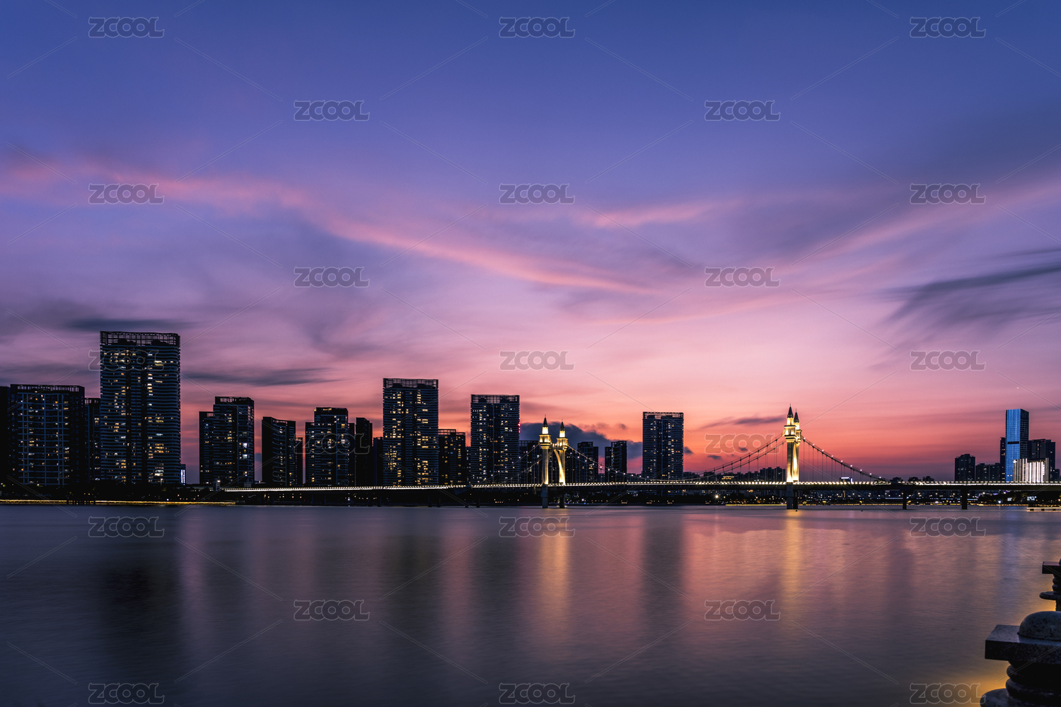 日落后晚霞映照下的珠海市白石桥景观