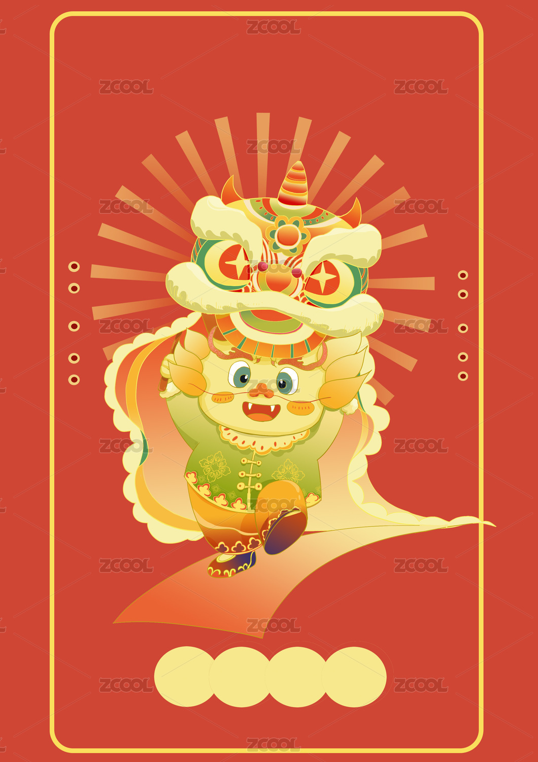 龙年生肖喜庆红金双色红包封面背景矢量插画