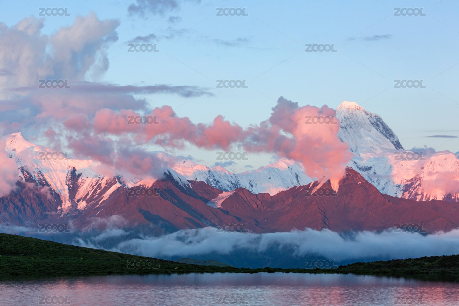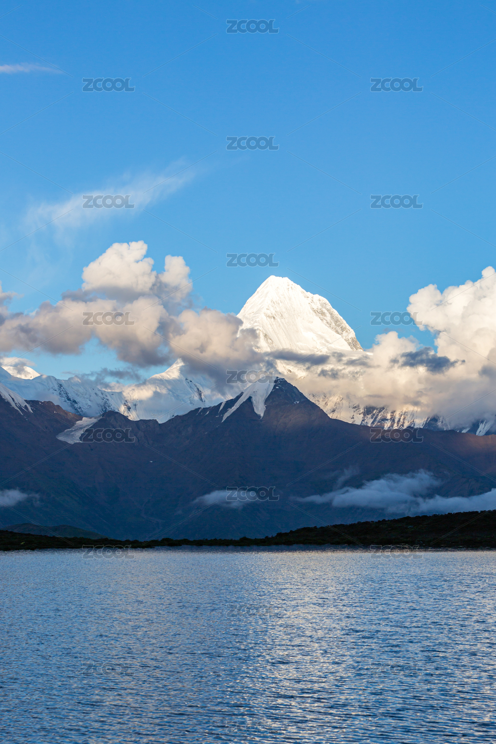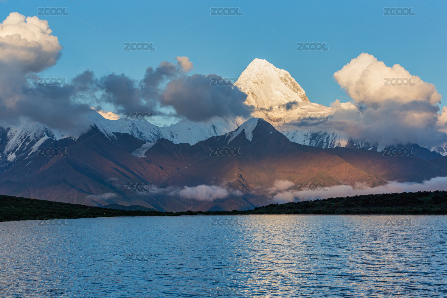 贡嘎山,雪山,云,著名景点,生态环境,湖,夏天,户外,高原,天空