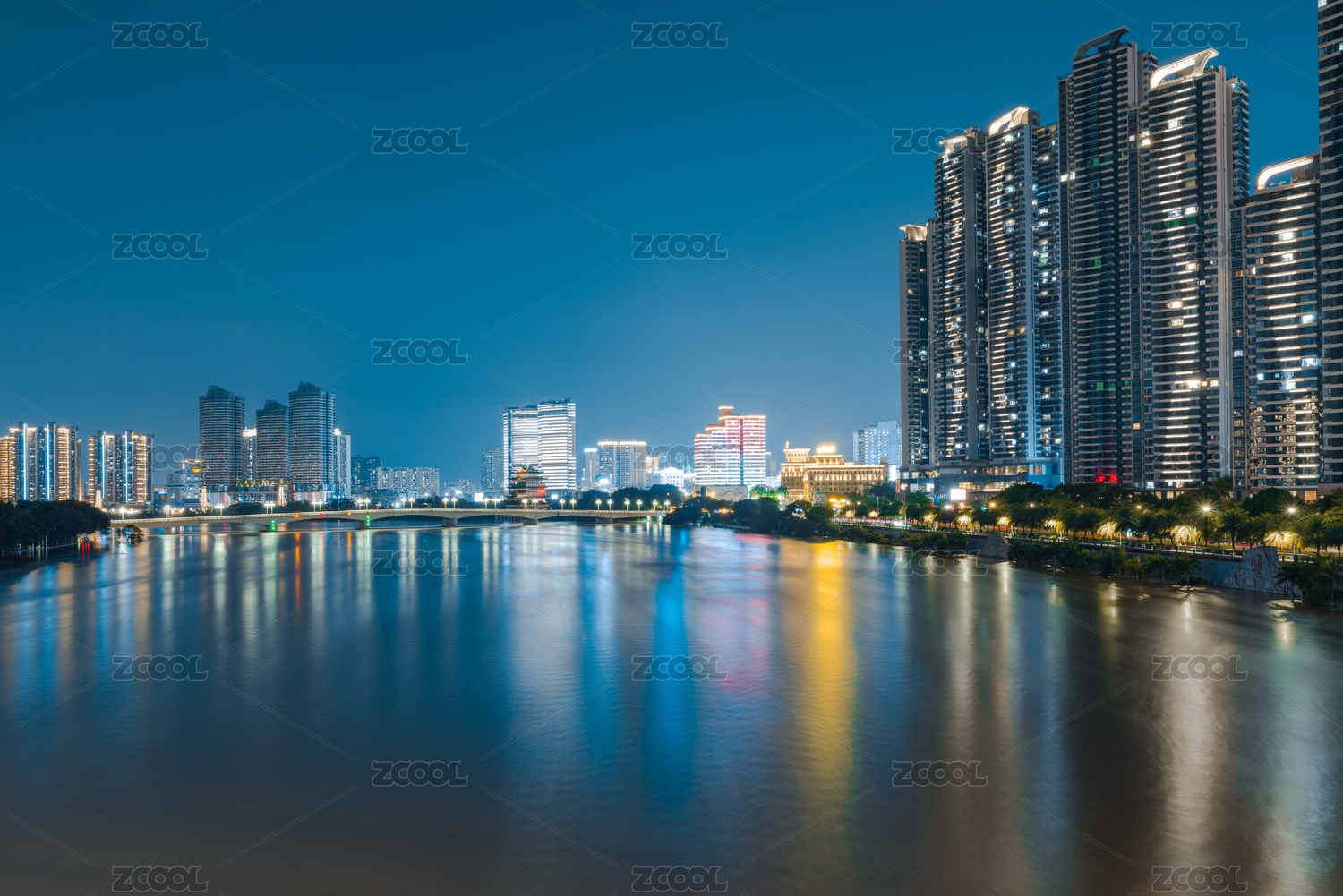 福建福州城市江滨建筑夜景风光