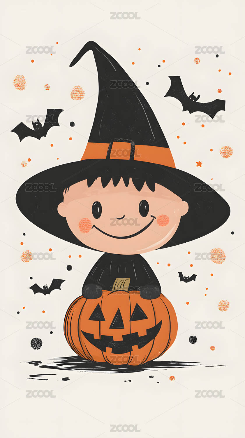 万圣节南瓜扫帚猫咪魔法小魔女海报