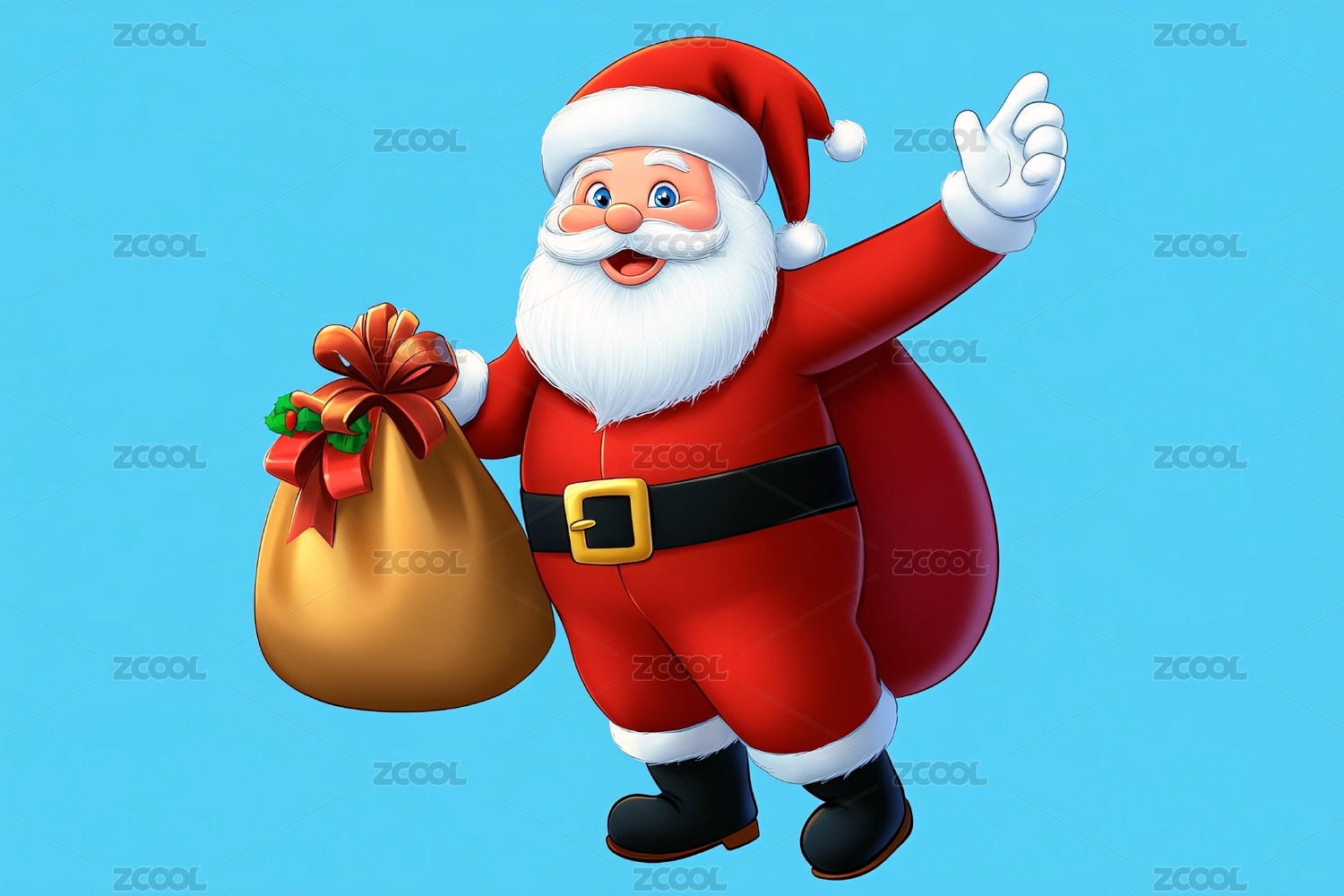 开心的奔跑着送礼物的圣诞老人,扁平插画