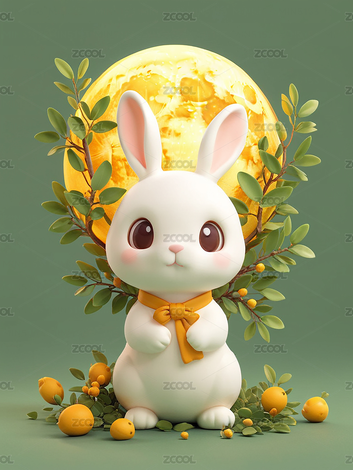 月亮,兔子,可爱,卡通,3D,中秋节,树叶,蛋糕,小白兔