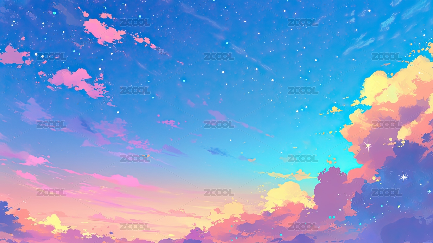 梦幻治愈云层夏天唯美天空云彩风景插画