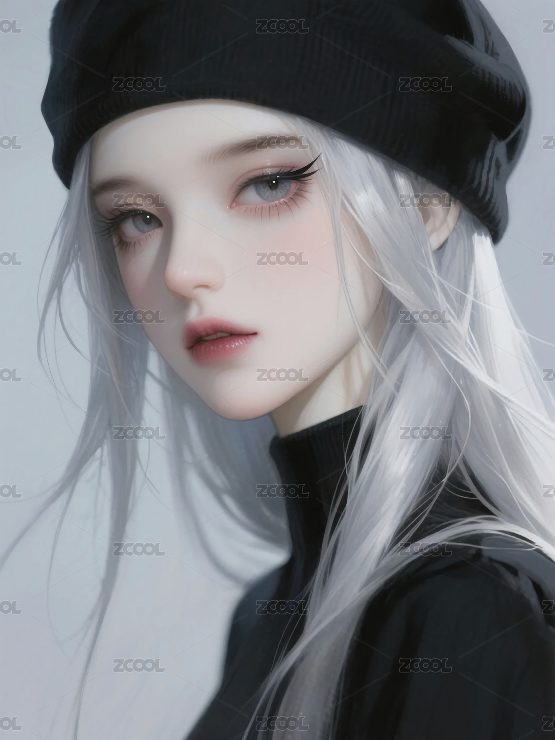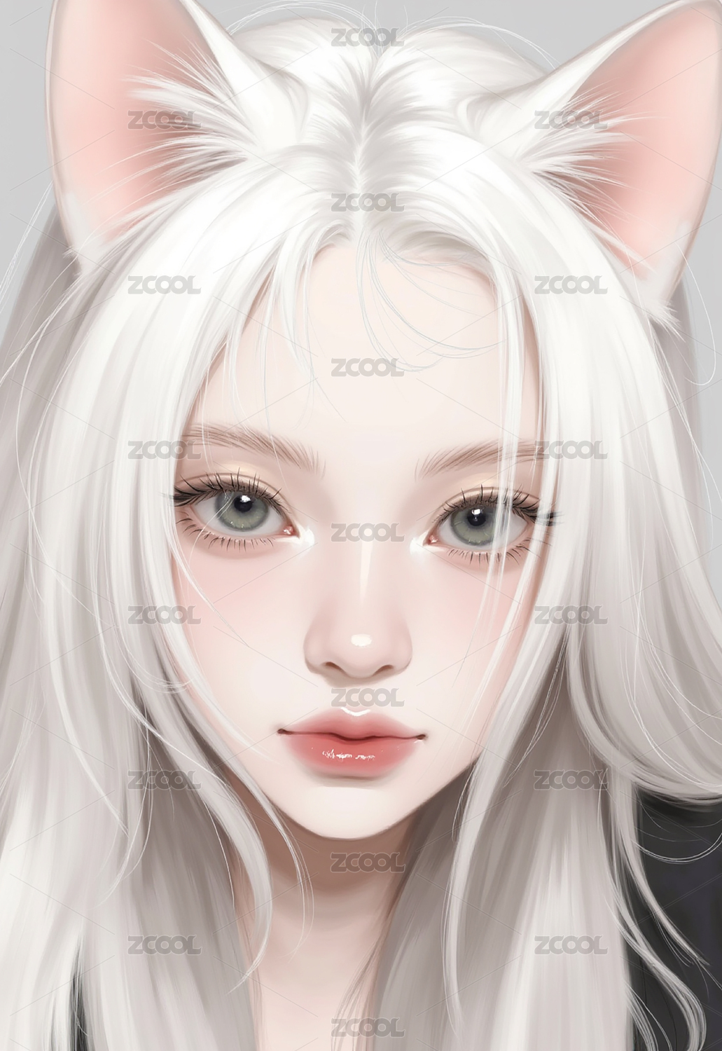白发,猫耳,美少女,少女,美女,女孩,女生,竖构图,对视,长发