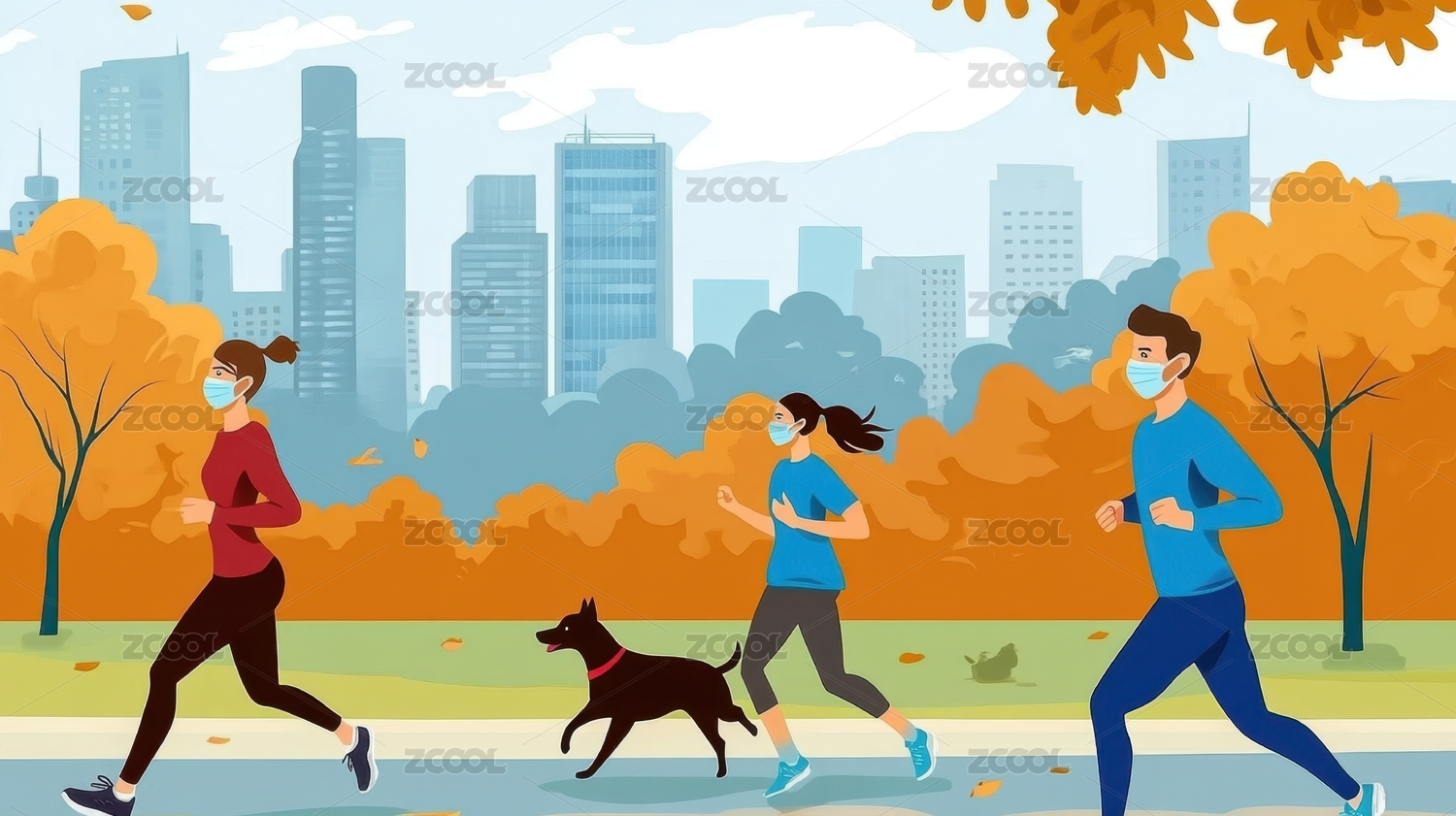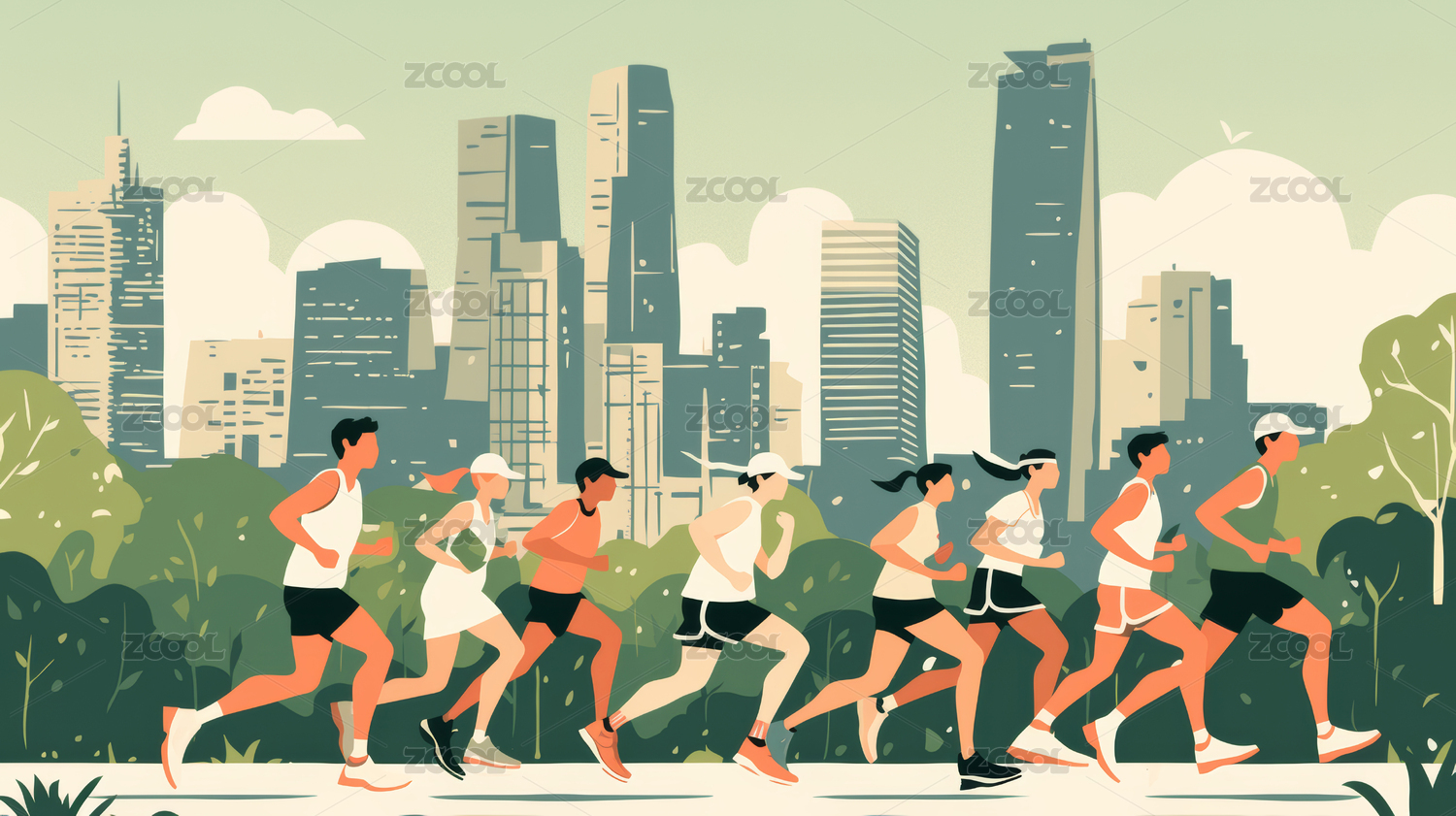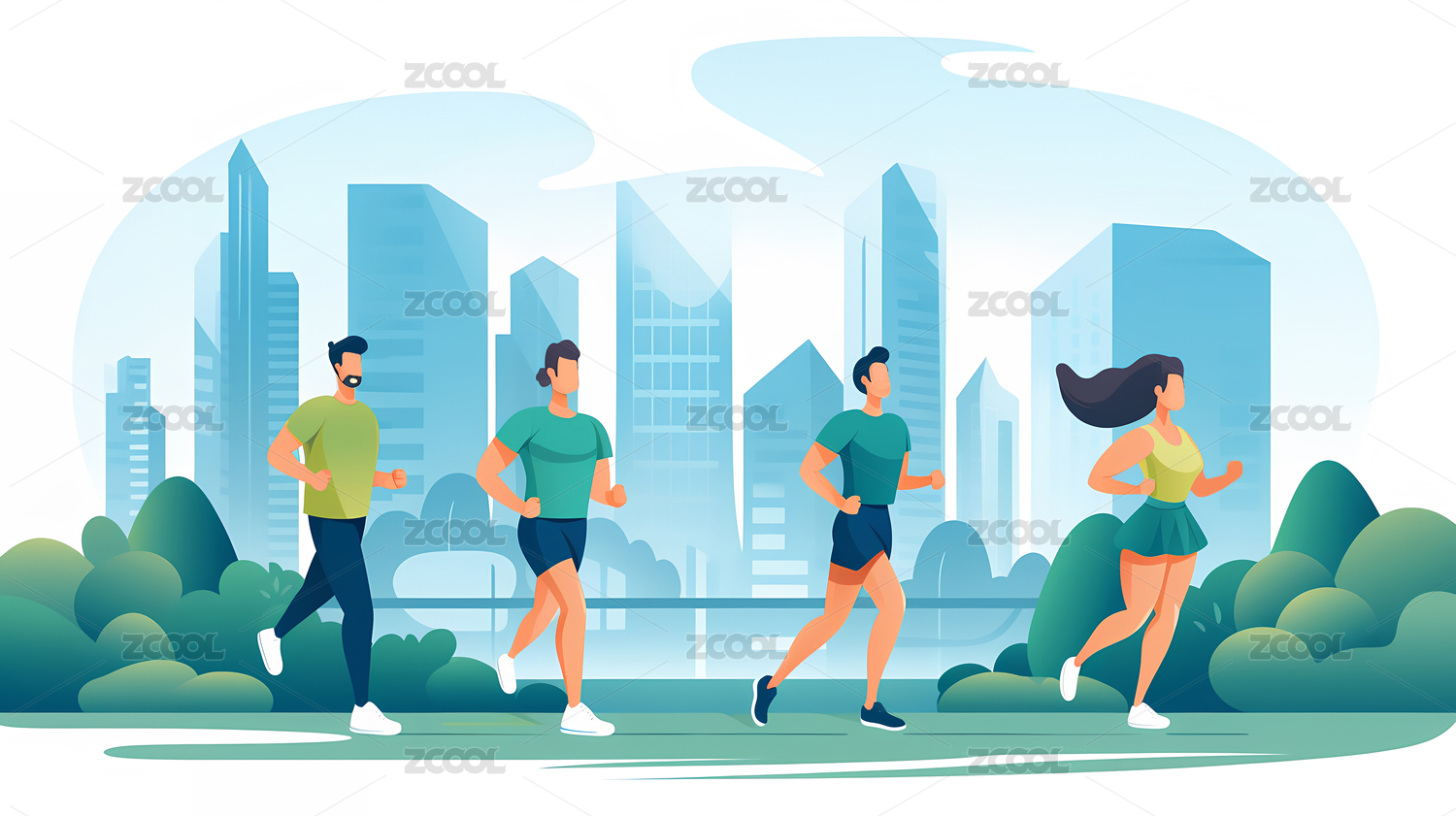 运动,跑步,晨练,团队,体育,健身,城市,公园,天际线,人群