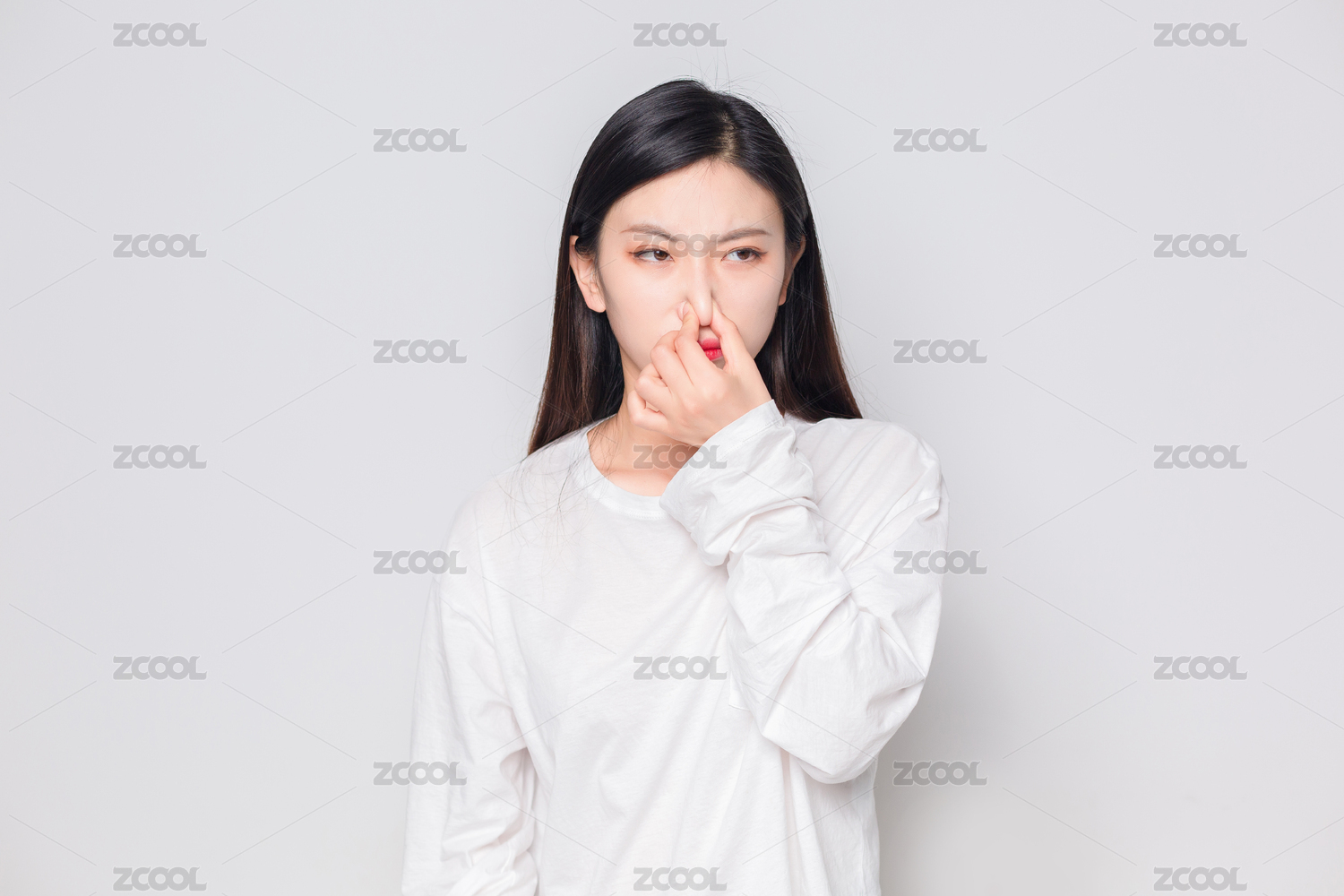在房间里,闻到臭味的亚洲美女