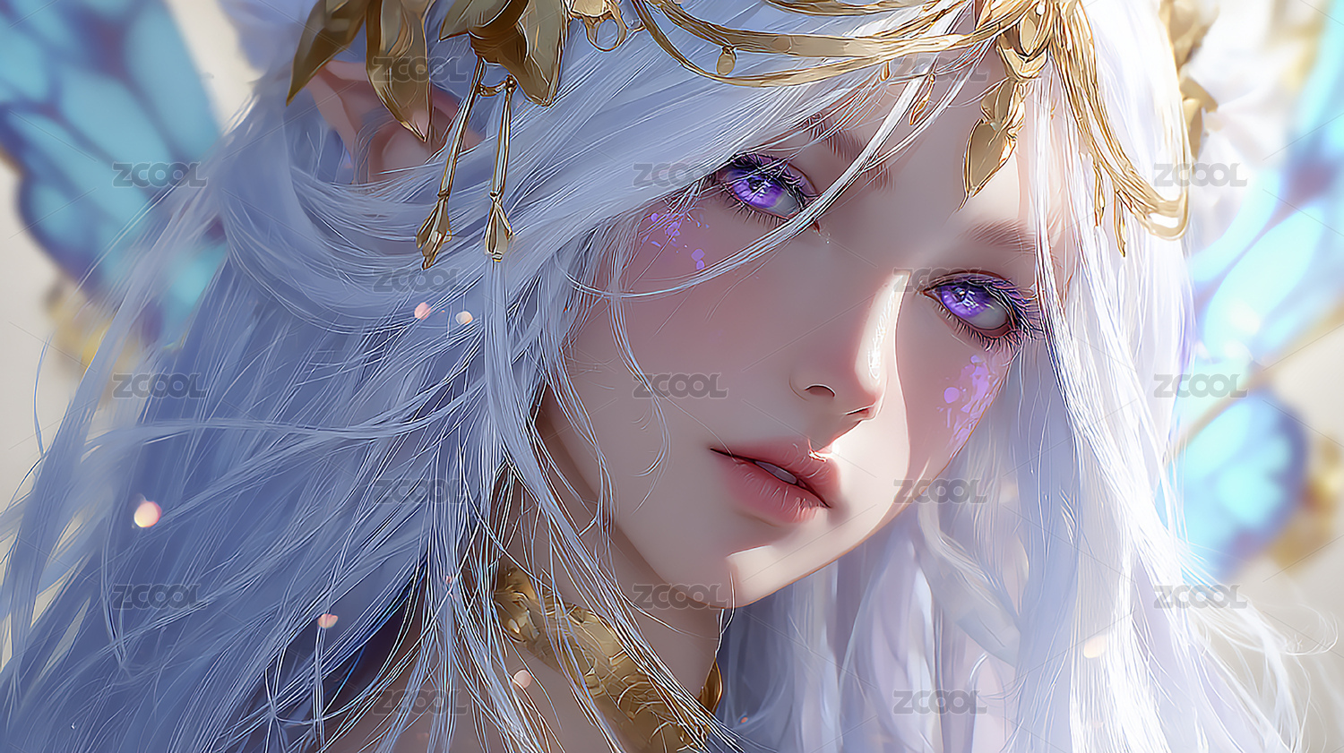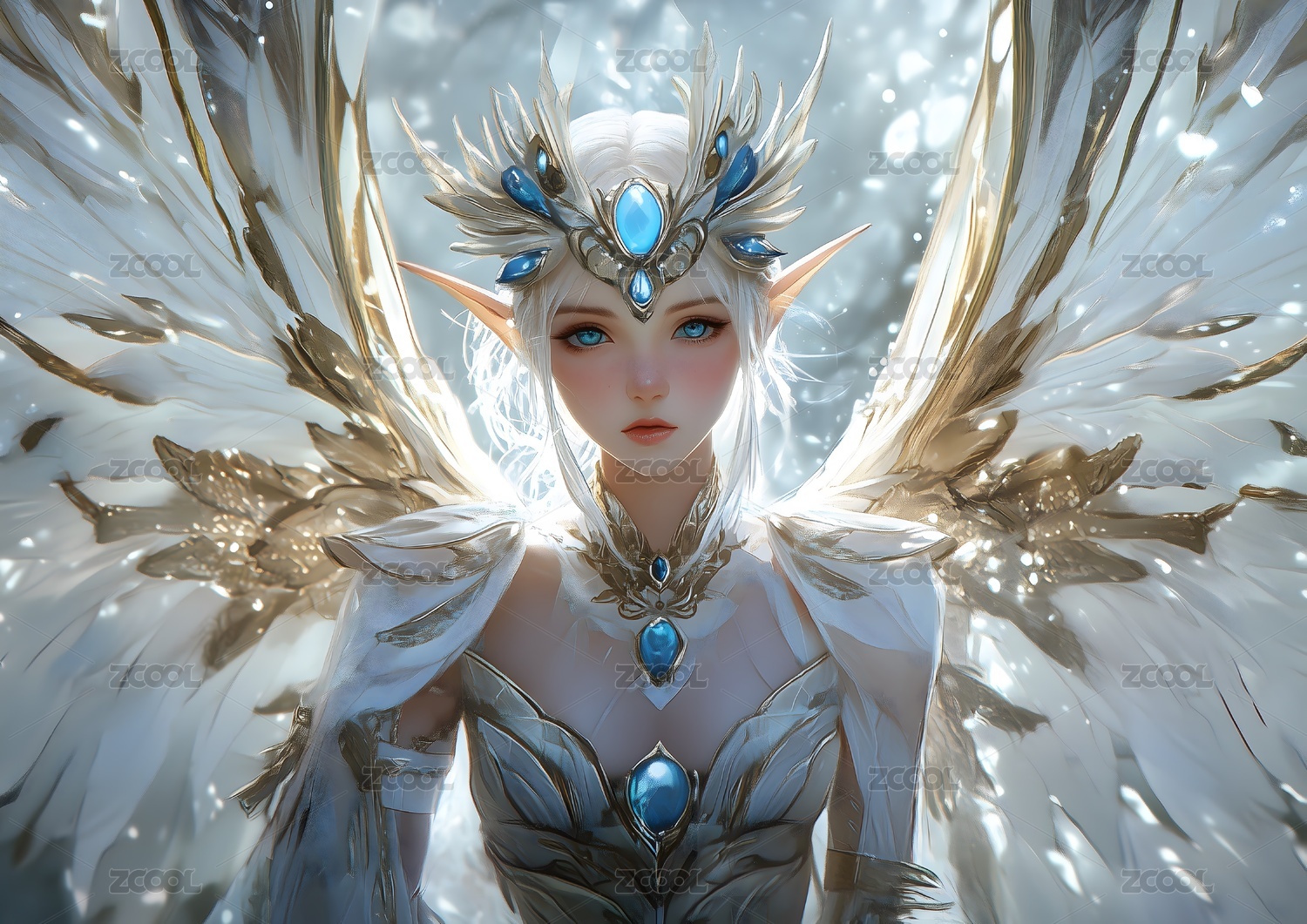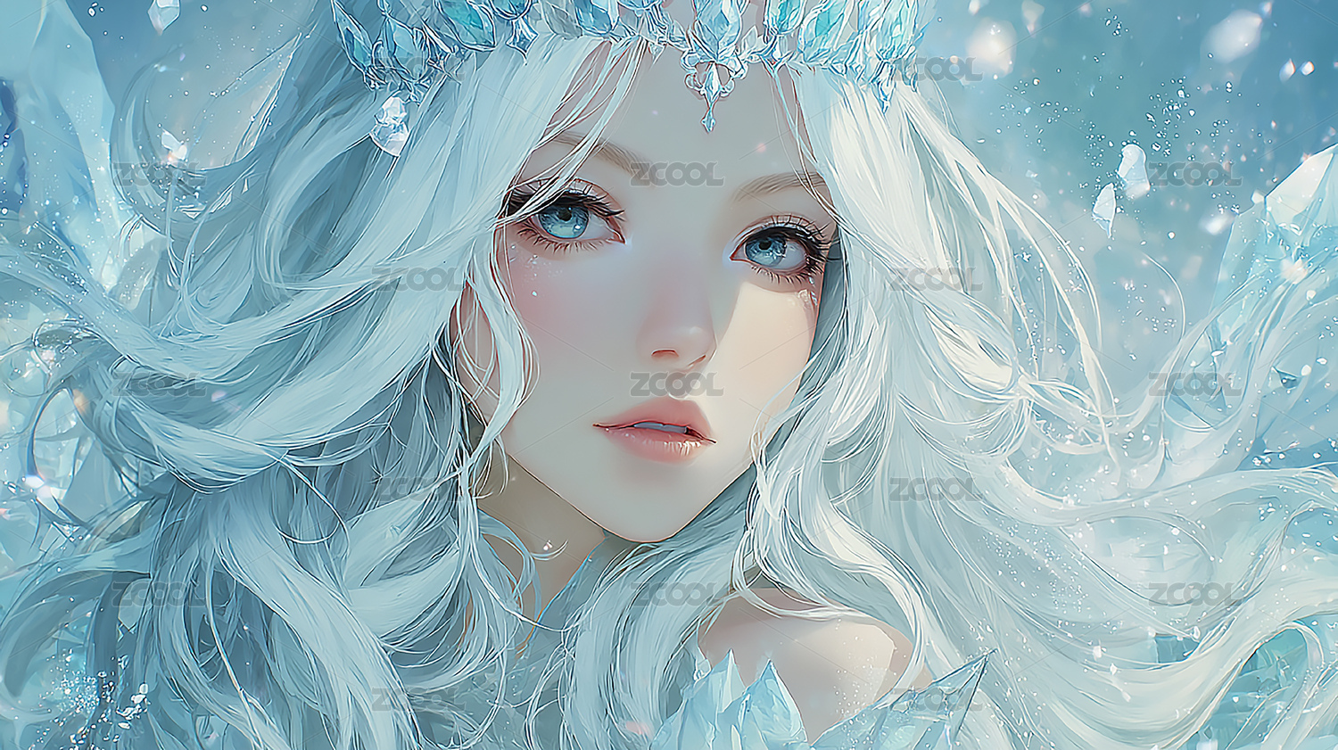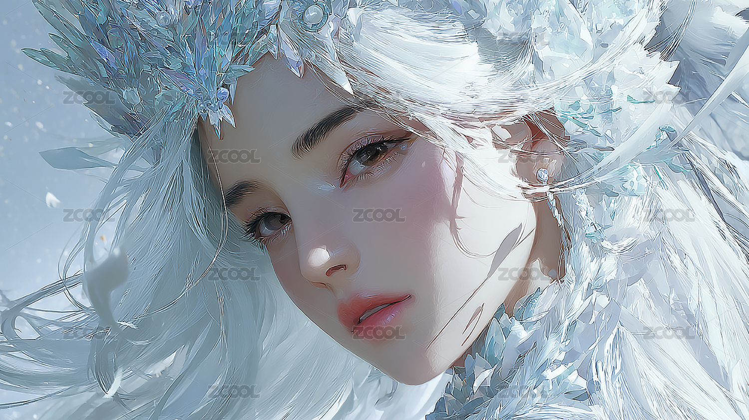 银发蓝眼女神晶莹剔透的装扮神秘而优雅