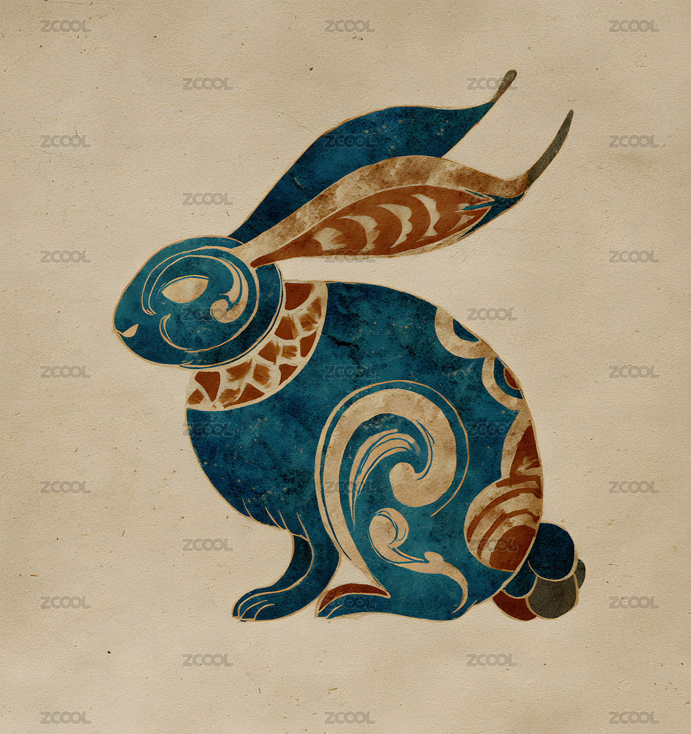 兔十二生肖简约潮流中国风传统纹样矢量插画