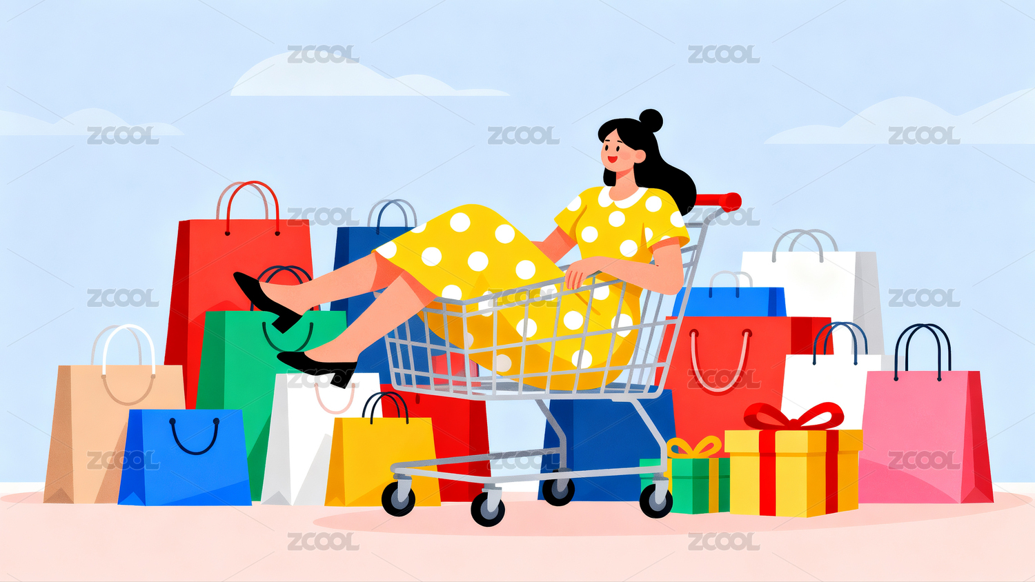 促销,网购,矢量图,扁平插画,购物节,购物车,人物,女生,逛街,背景