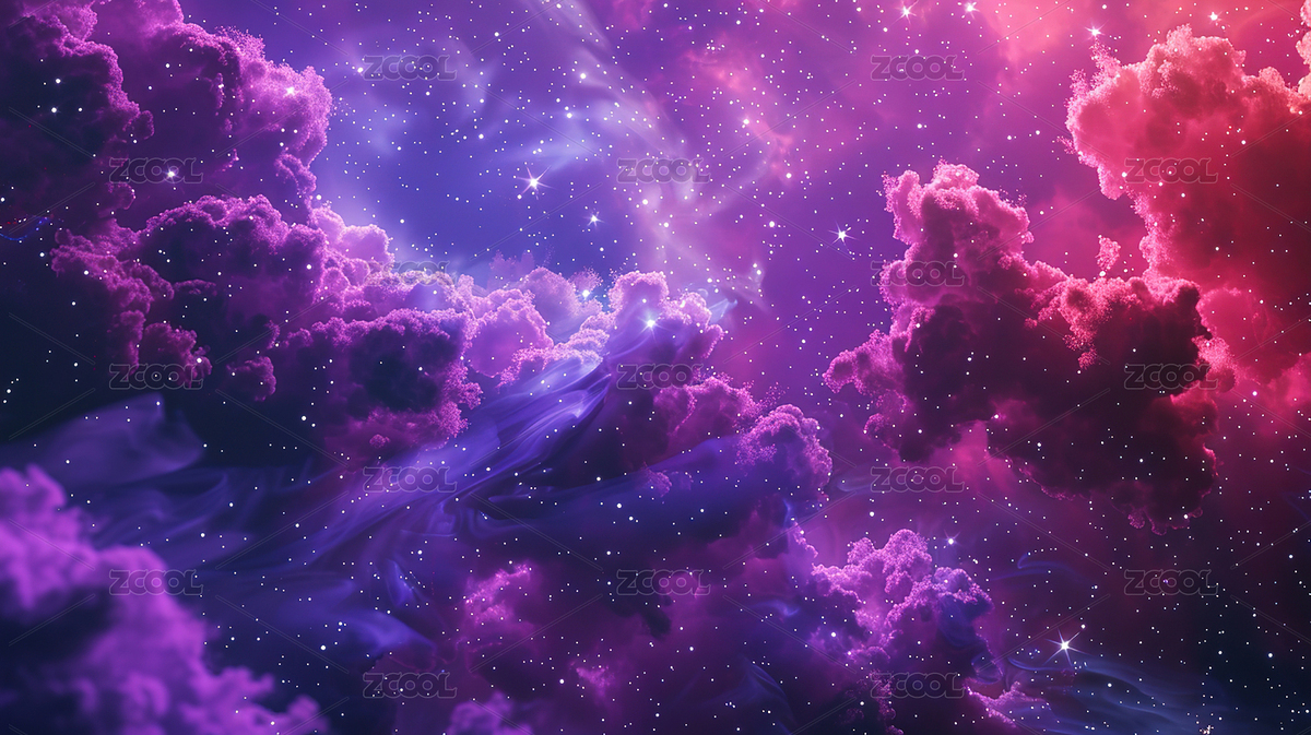 抽象星空紫色闪亮星云银河系和行星背景星系