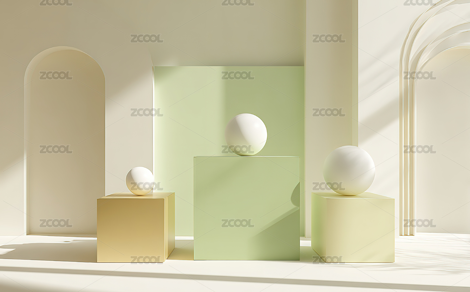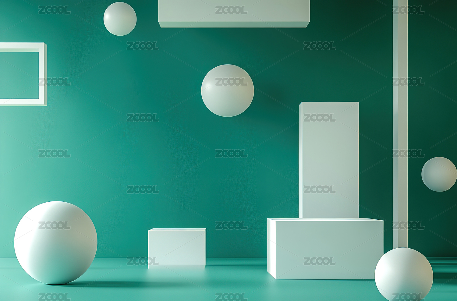 几何形体与悬浮球体的抽象场景