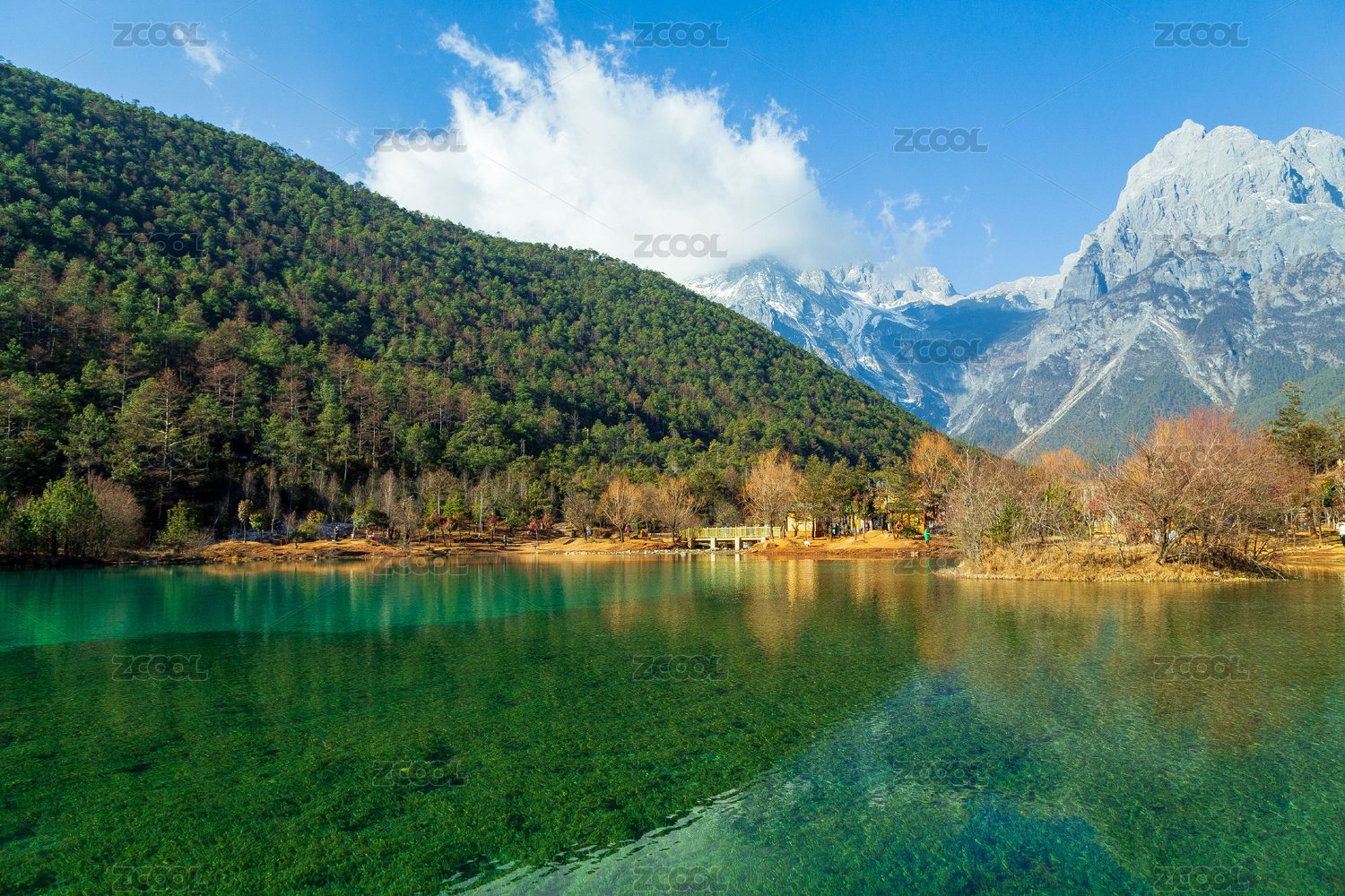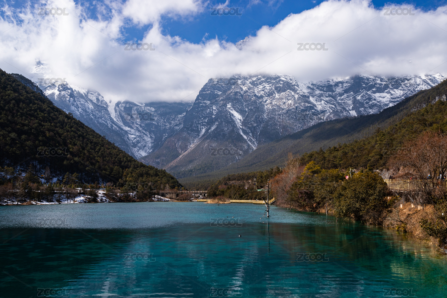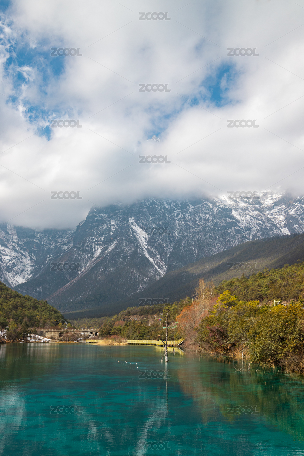 中国丽江玉龙雪山湖泊风光