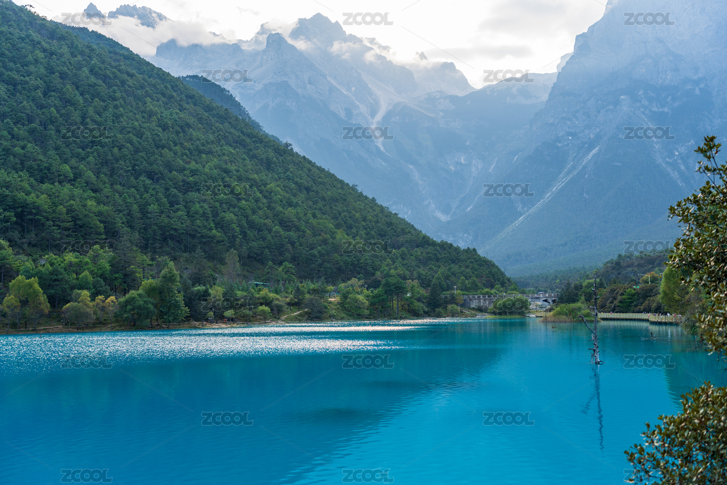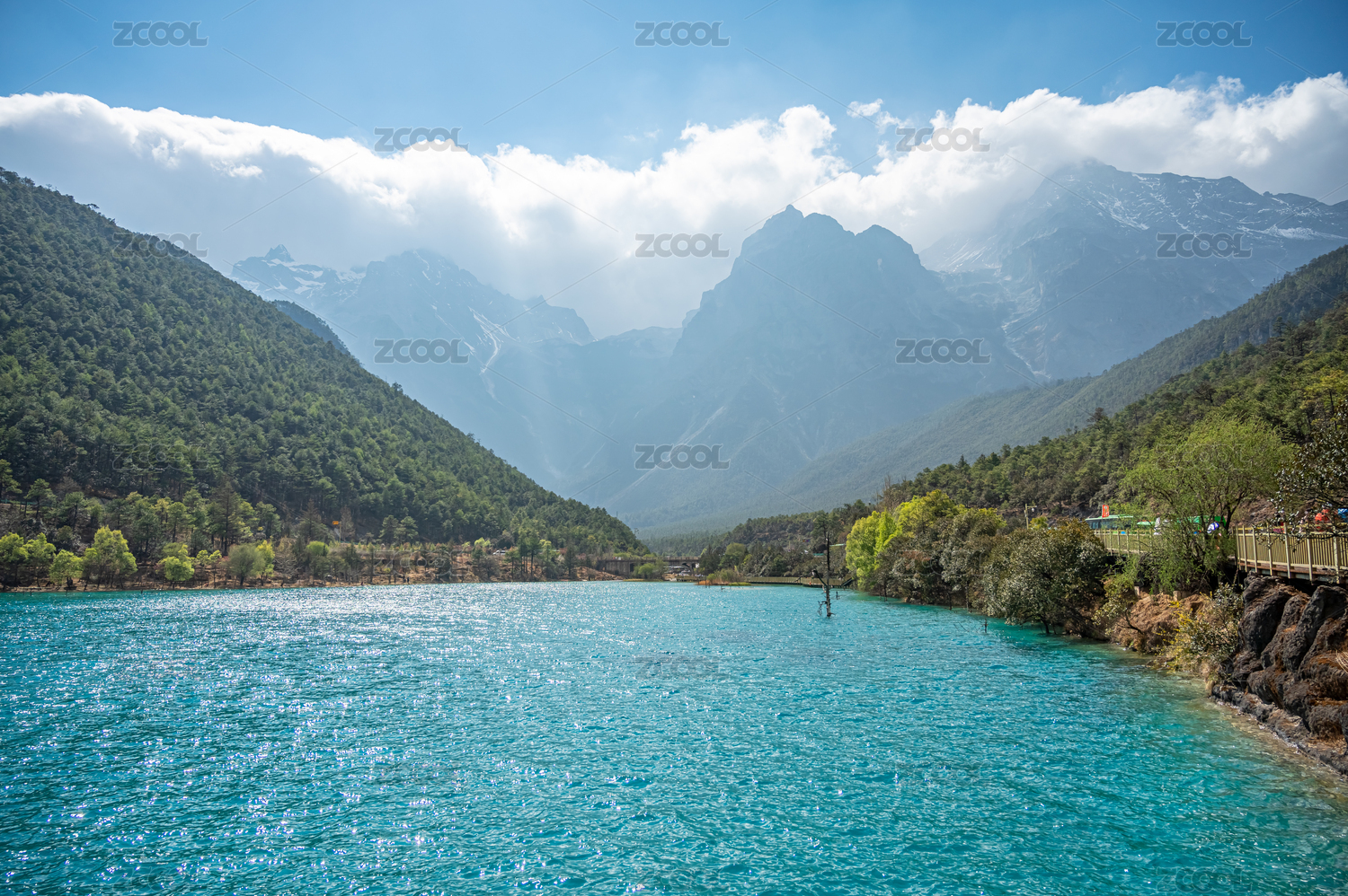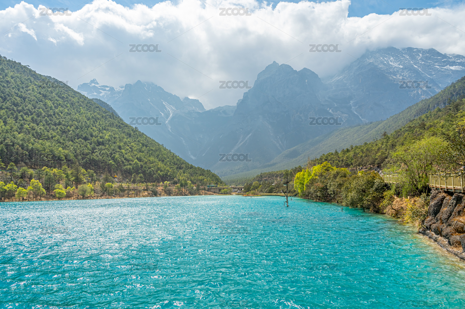 春季三月的云南丽江玉龙雪山蓝月谷水波荡漾
