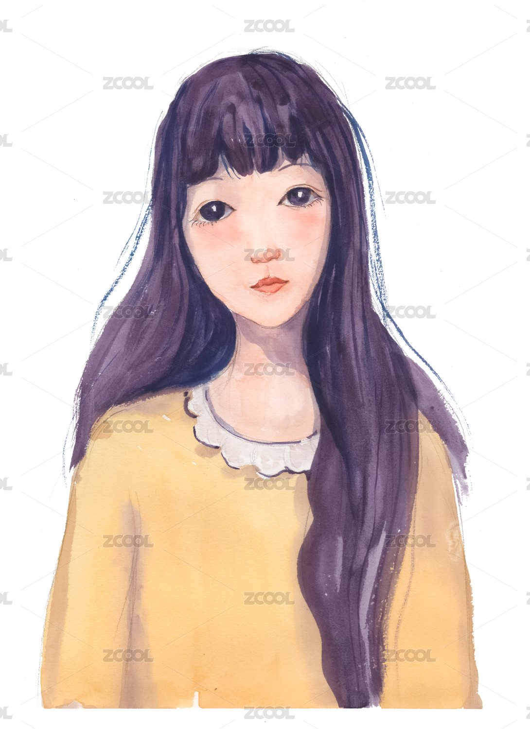 温暖水彩-戴帽子的长卷发大眼女孩2