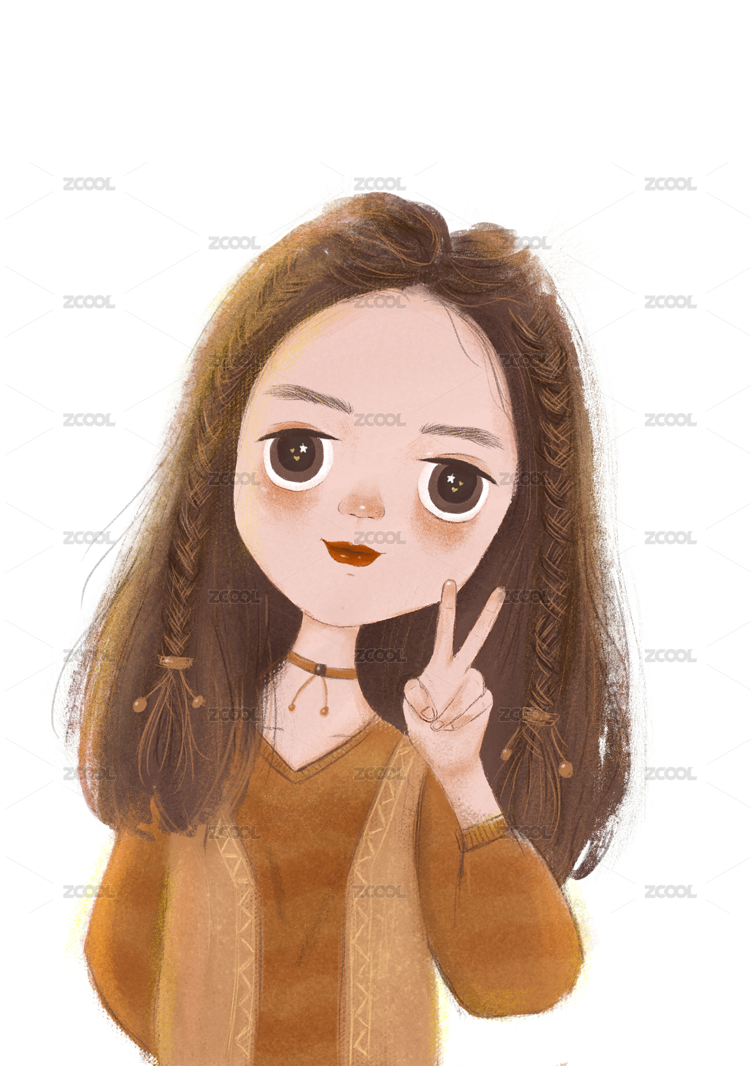 温暖手绘-头上戴花的卷发大眼睛女孩2