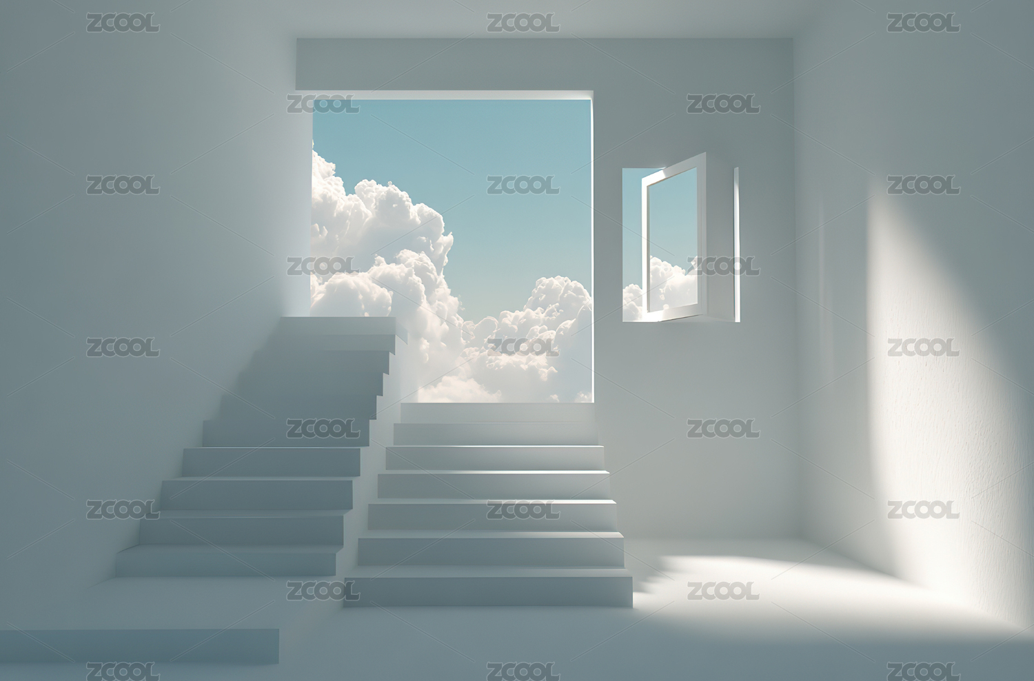 留白,白昼,台阶楼梯,前进的道路,概念,AI数字艺术,三维图形,成功,建筑外部,现代