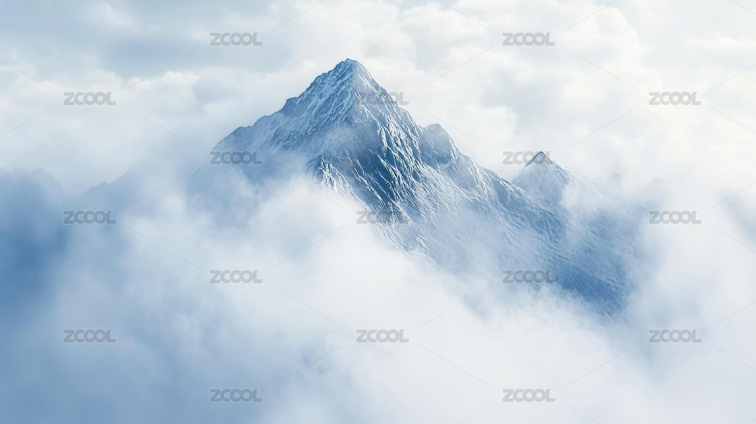 云雾缭绕的雪山风景