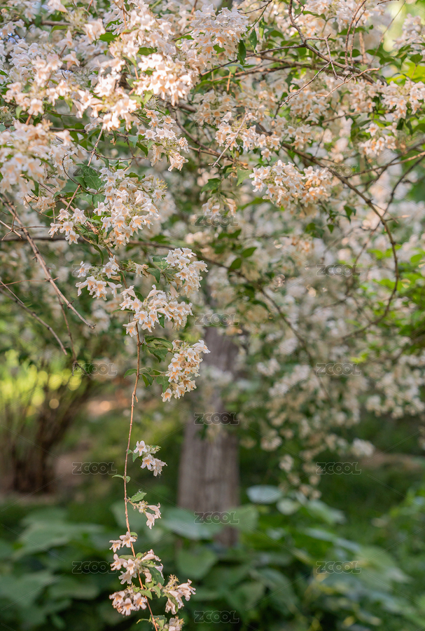 春天枝头绽放的淡雅白色海棠花繁花似雪