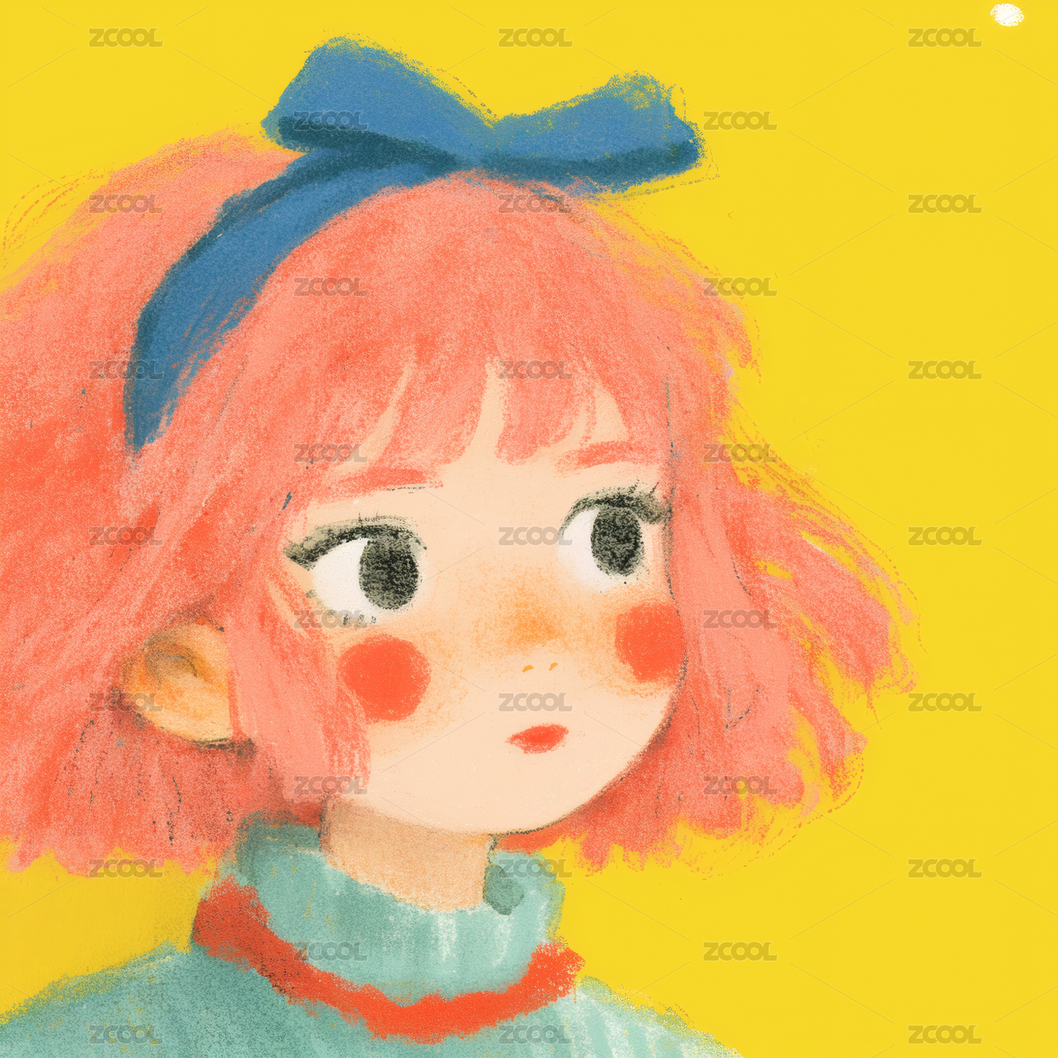 可爱女孩特写蜡笔画