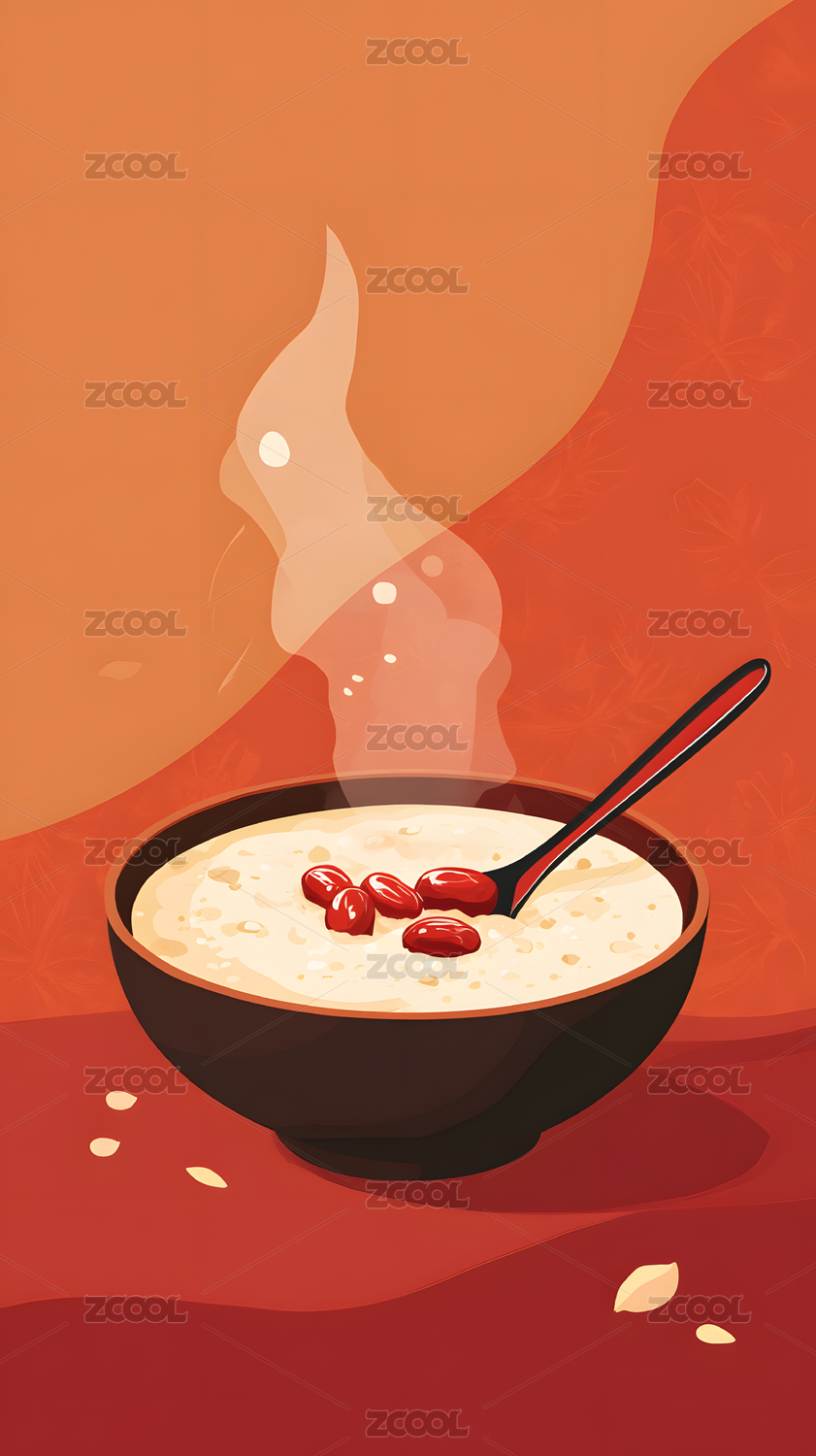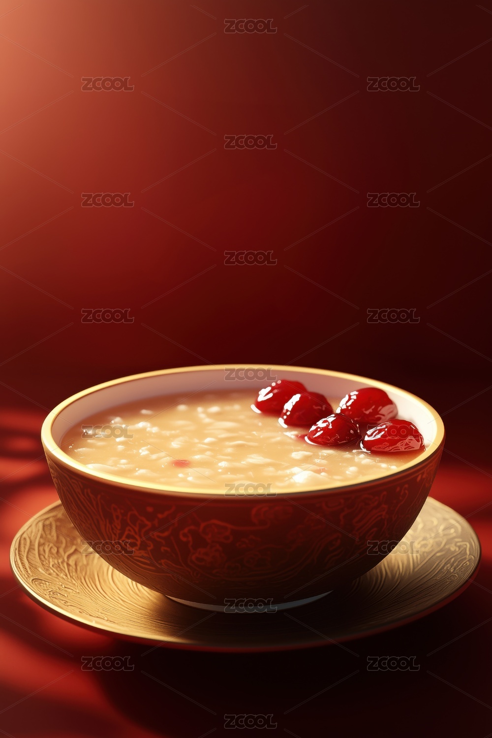 月夜背景下一碗热腾腾的腊八粥放在板子上