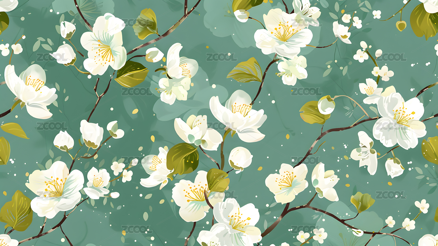 梨花,花,花卉,植物,插画,壁纸,装饰画,手绘,纯色,背景