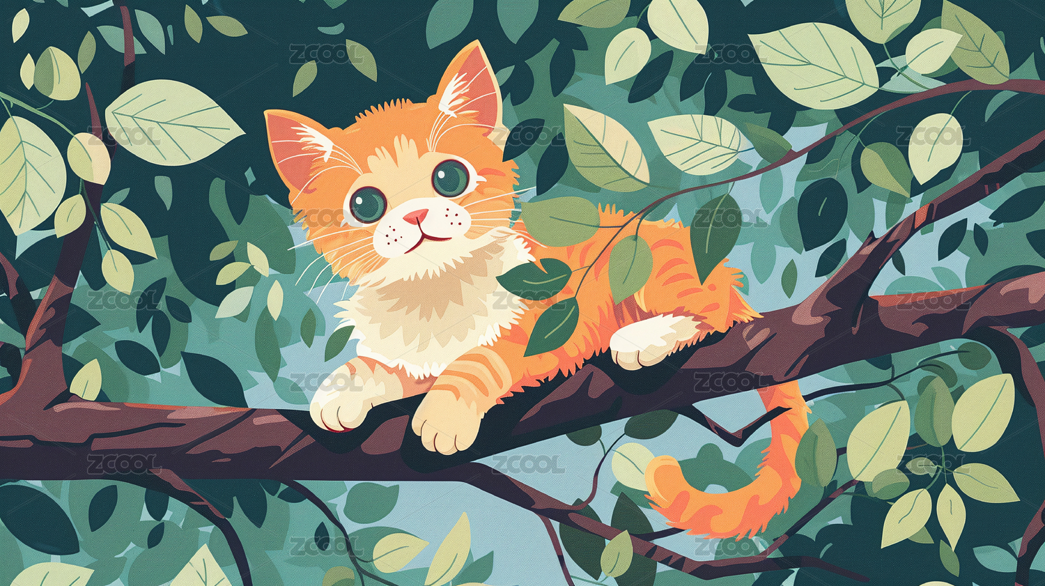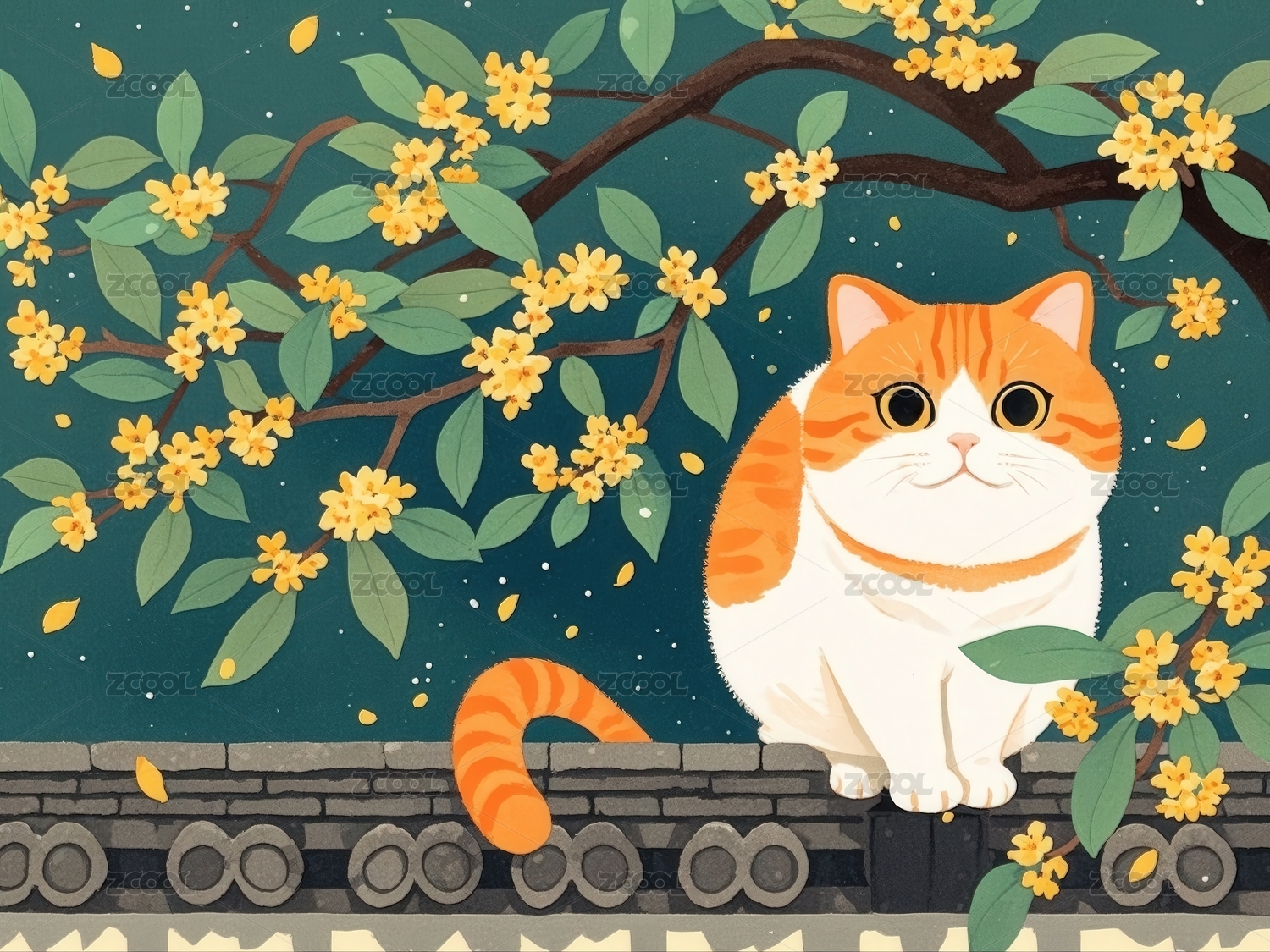 猫,小猫,猫咪,可爱,卡通,插画,动物,扁平风,秋天,秋分