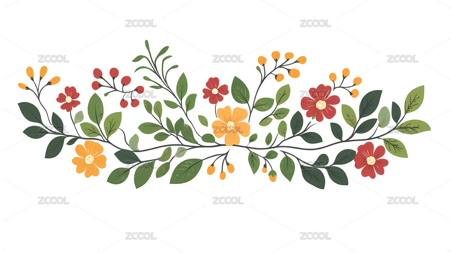 水彩手绘插画植物叶片花朵黄色