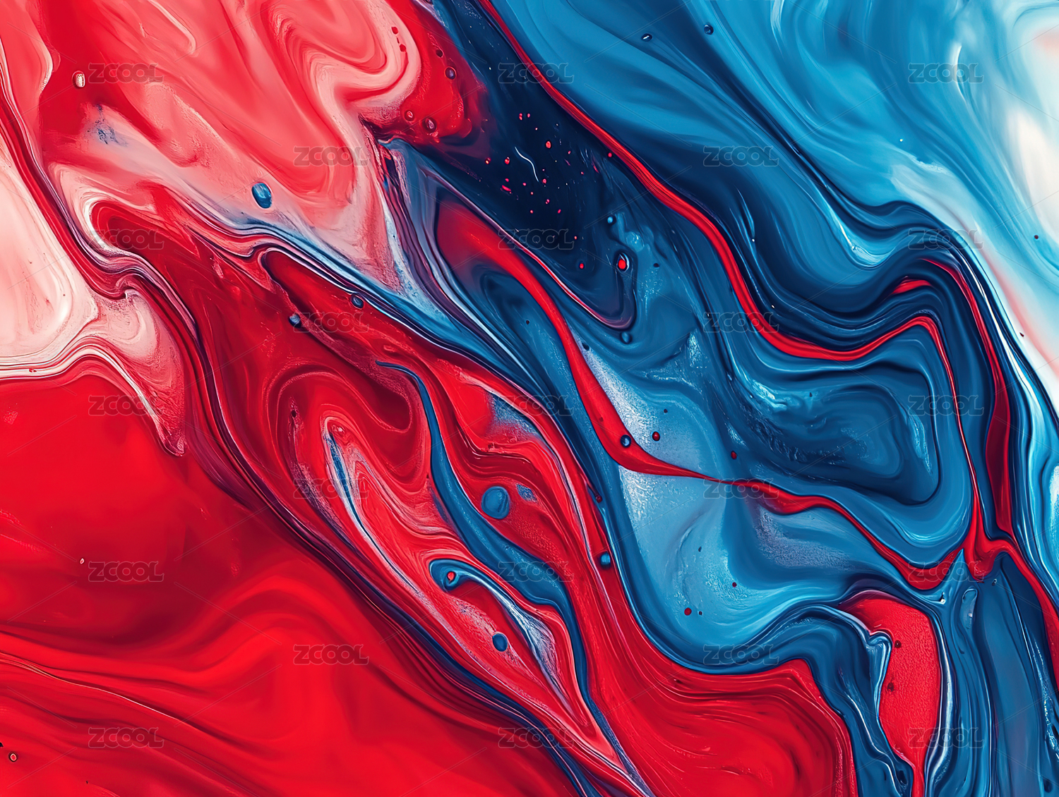 蓝红色液体涂料纹理背景