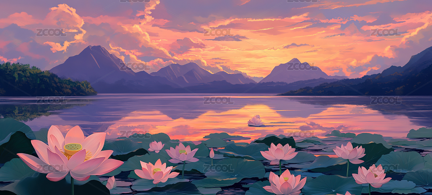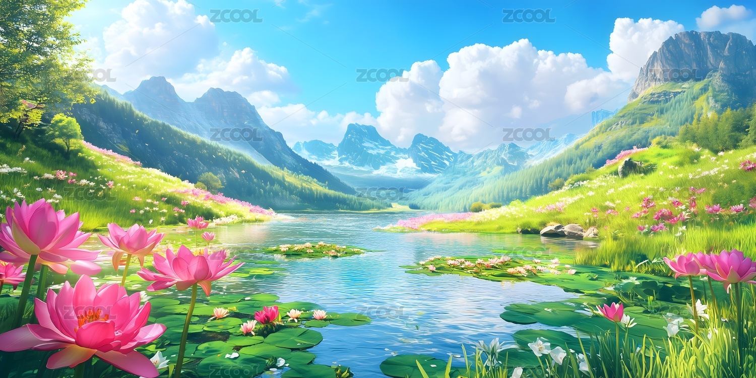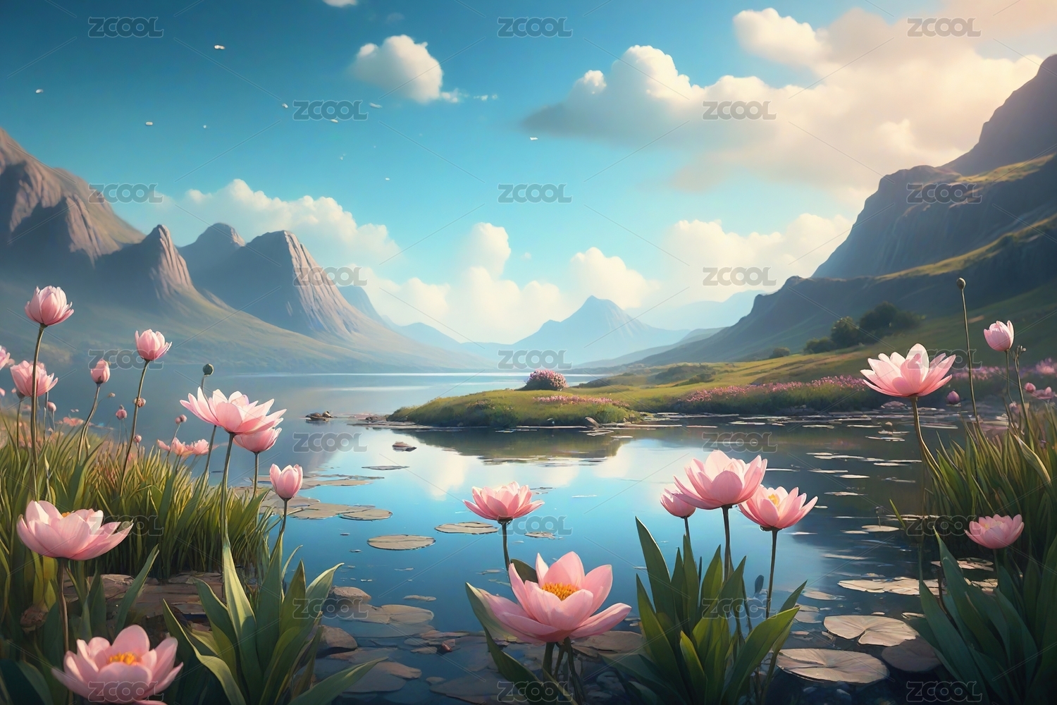 AI数字艺术,户外,自然,天空,夏天,自然美,插画,宁静