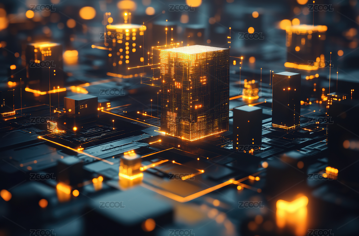 科技方块与电路板的未来感景象