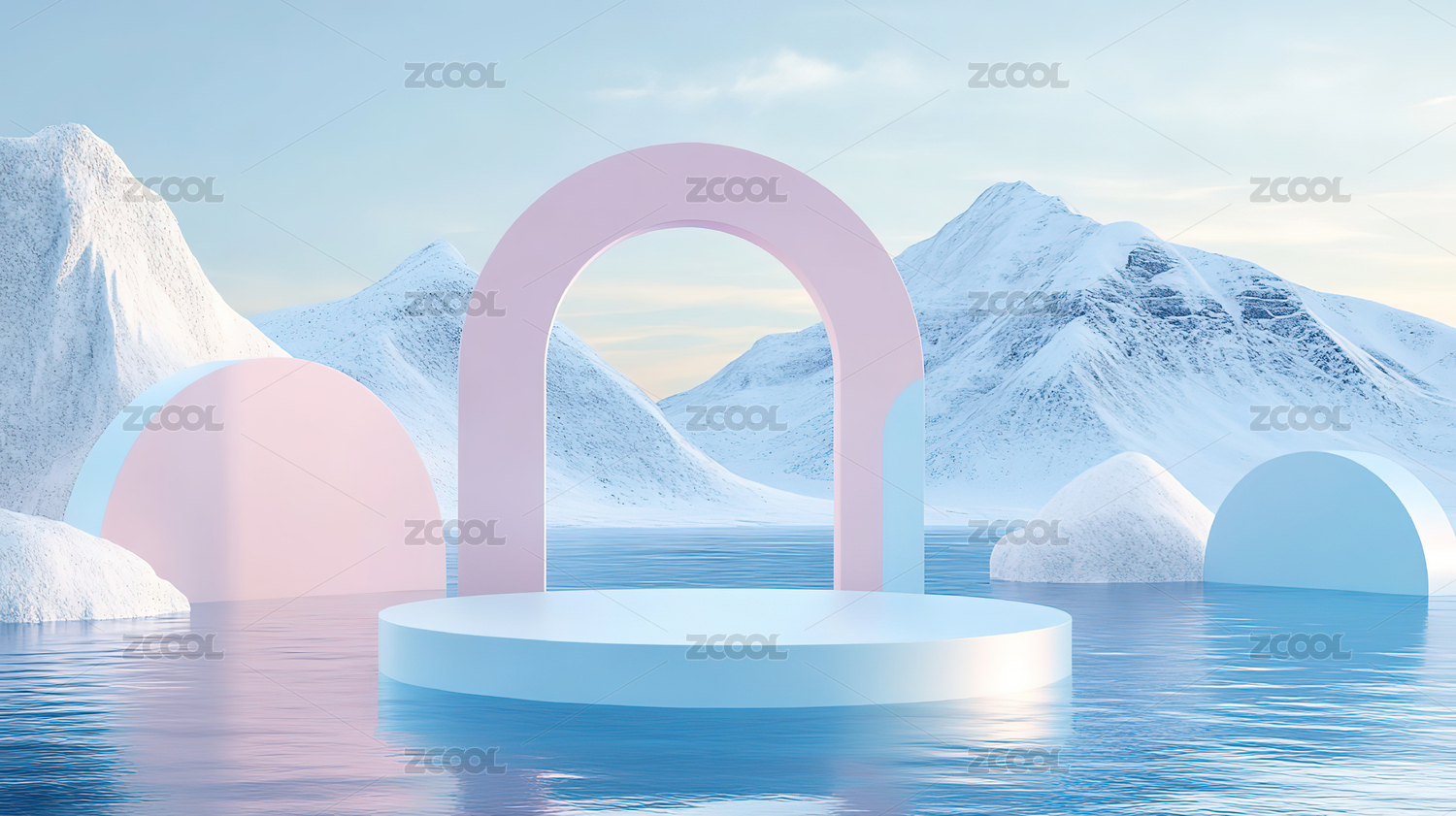 极简拱门通往雪山
