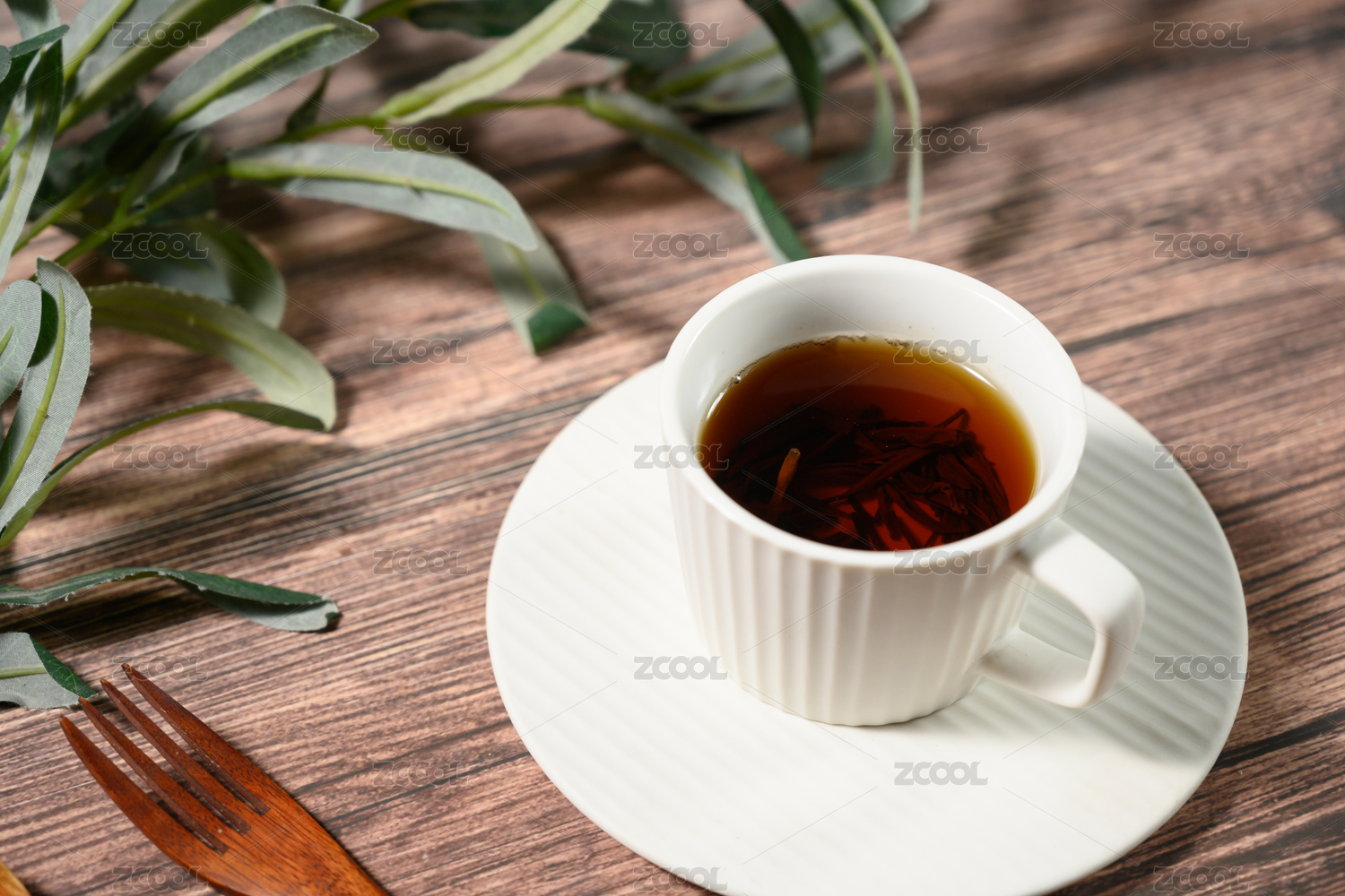 桌面上的杯子里的美味可口的滇红金针茶