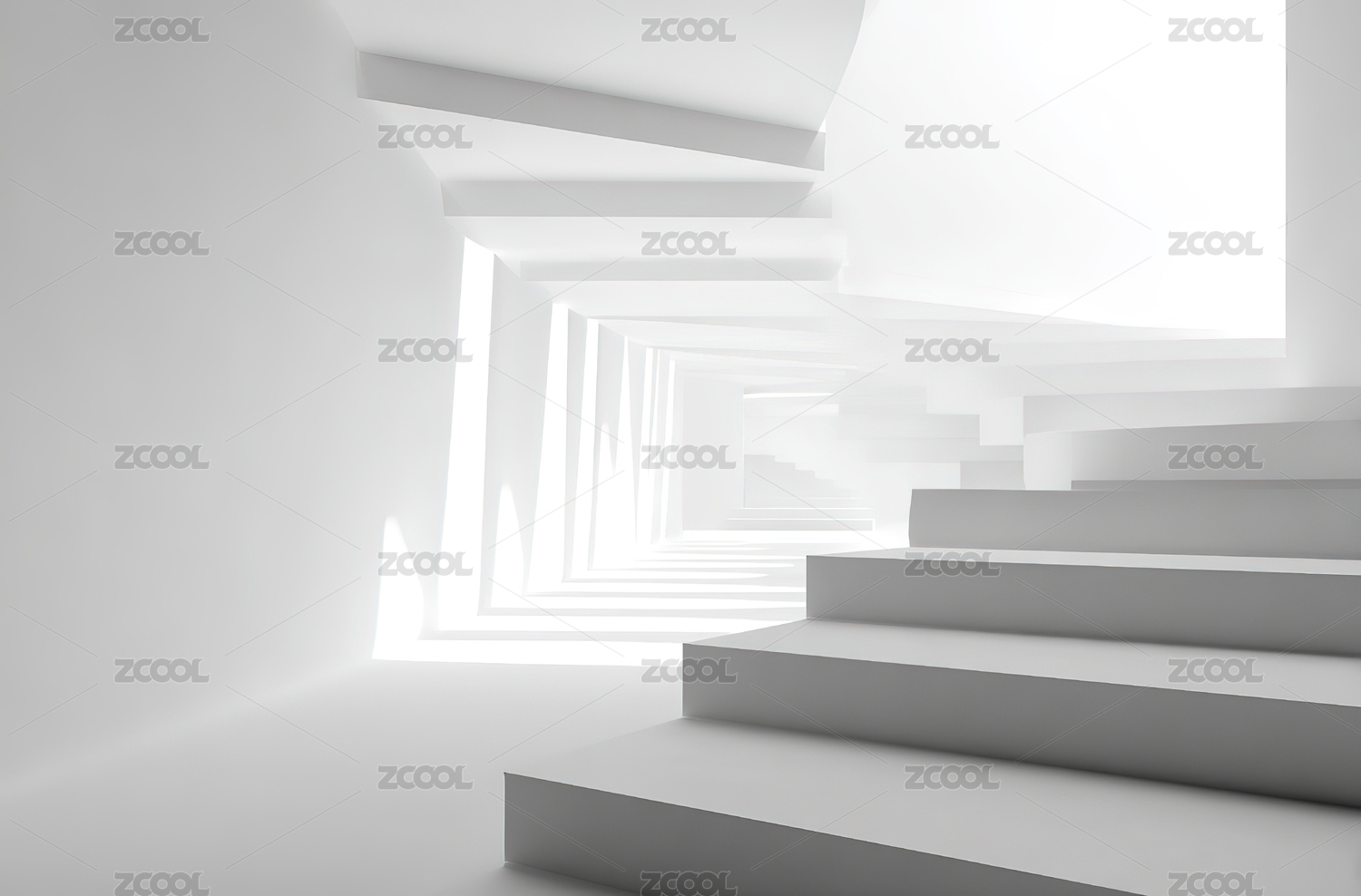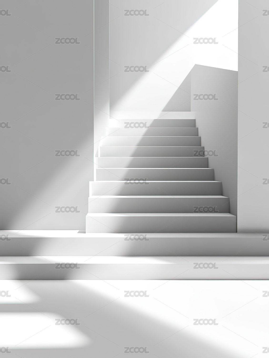 白色阶梯与光影的抽象空间
