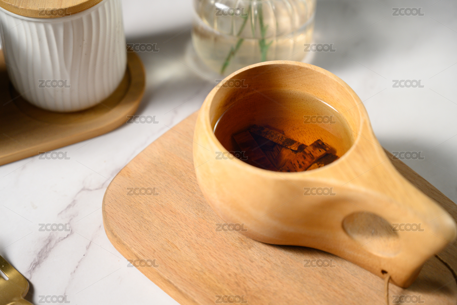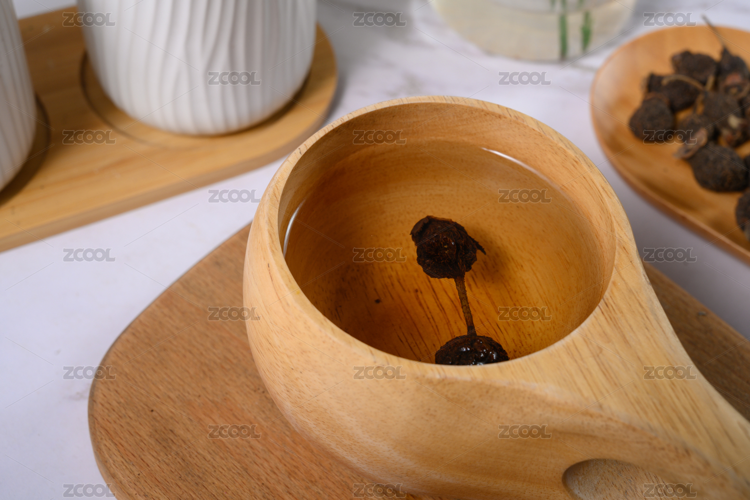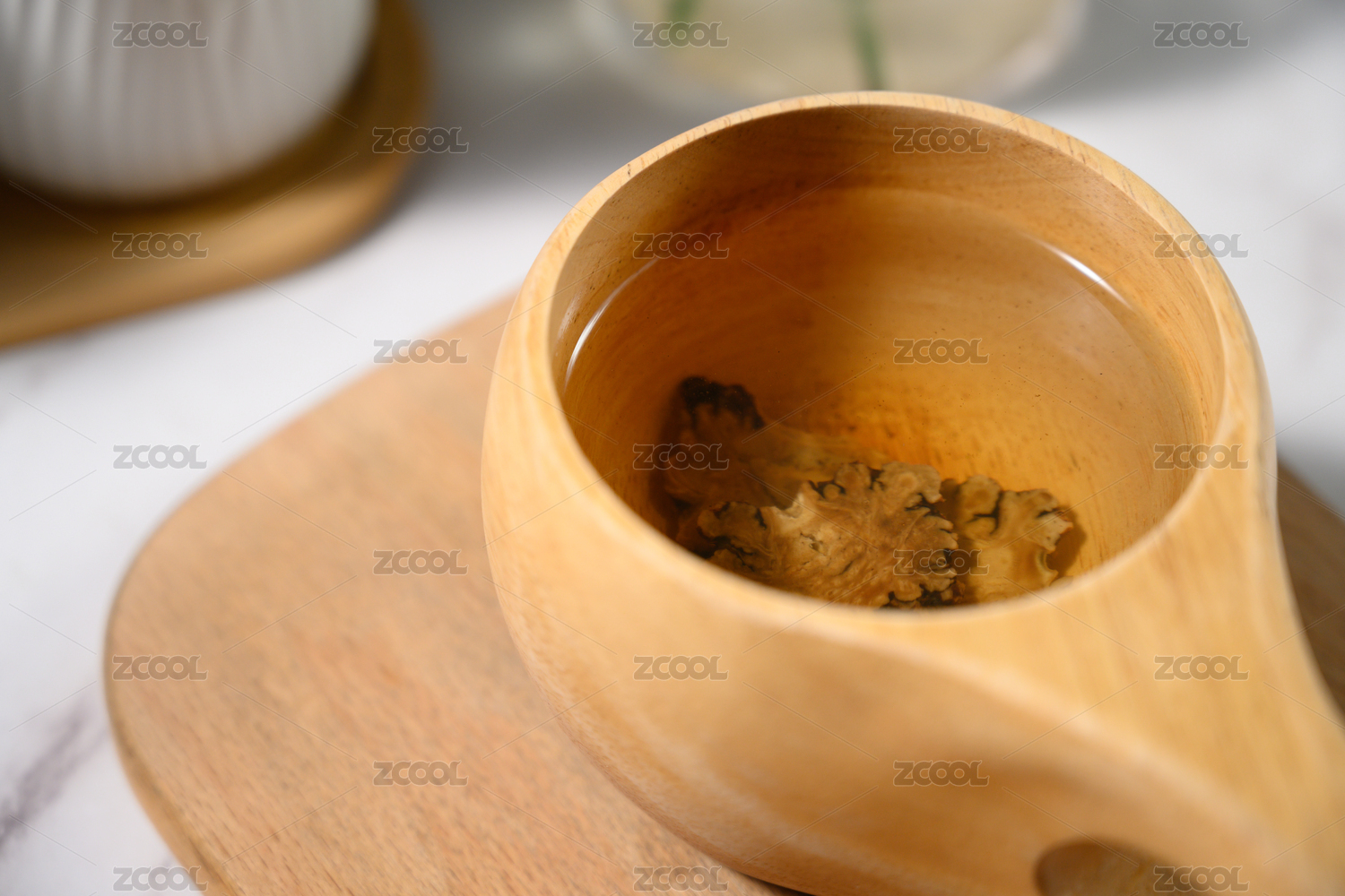 桌面上的盘子里的美味可口的咖啡果皮茶