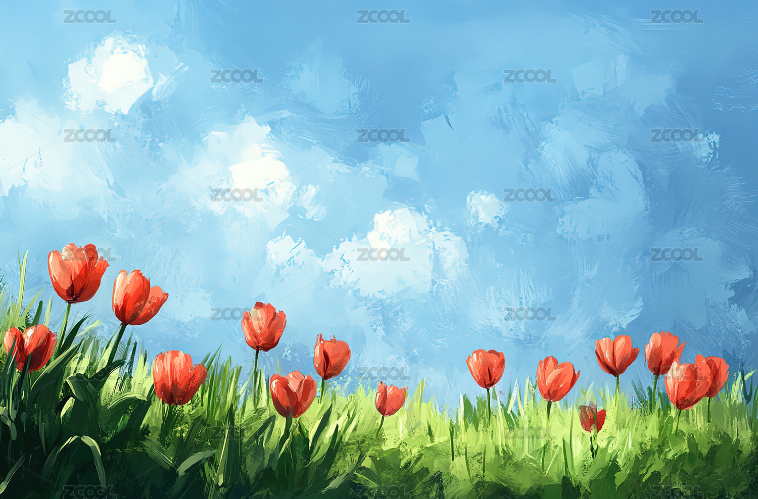 蓝色天空下的郁金香插画