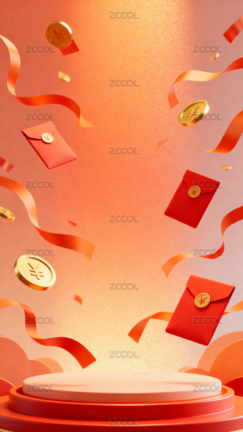 金融理财投资活动抽奖钱币金币红包矢量插画
