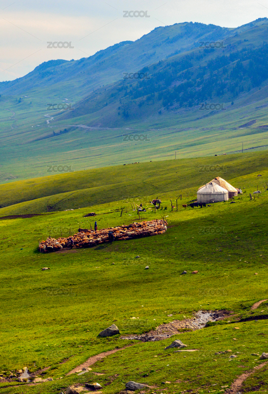 中国新疆伊犁昭苏草原高山草甸自然风光