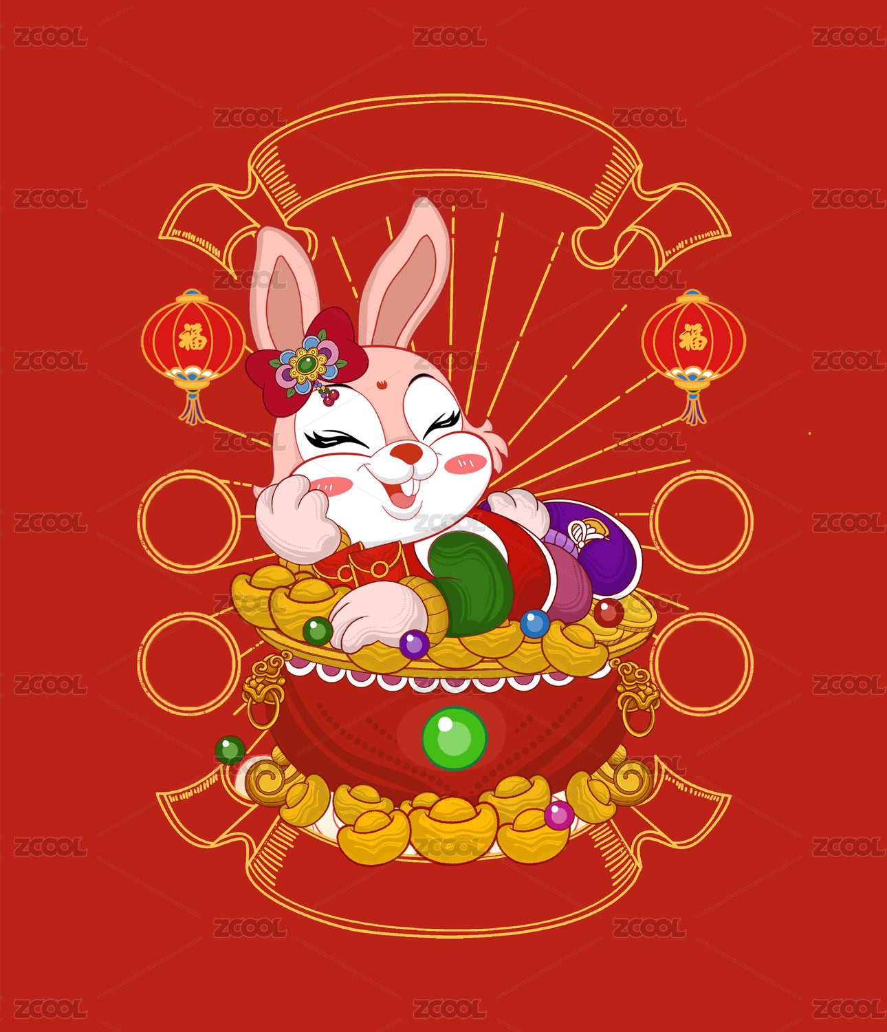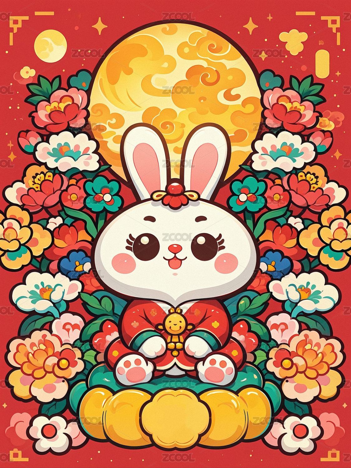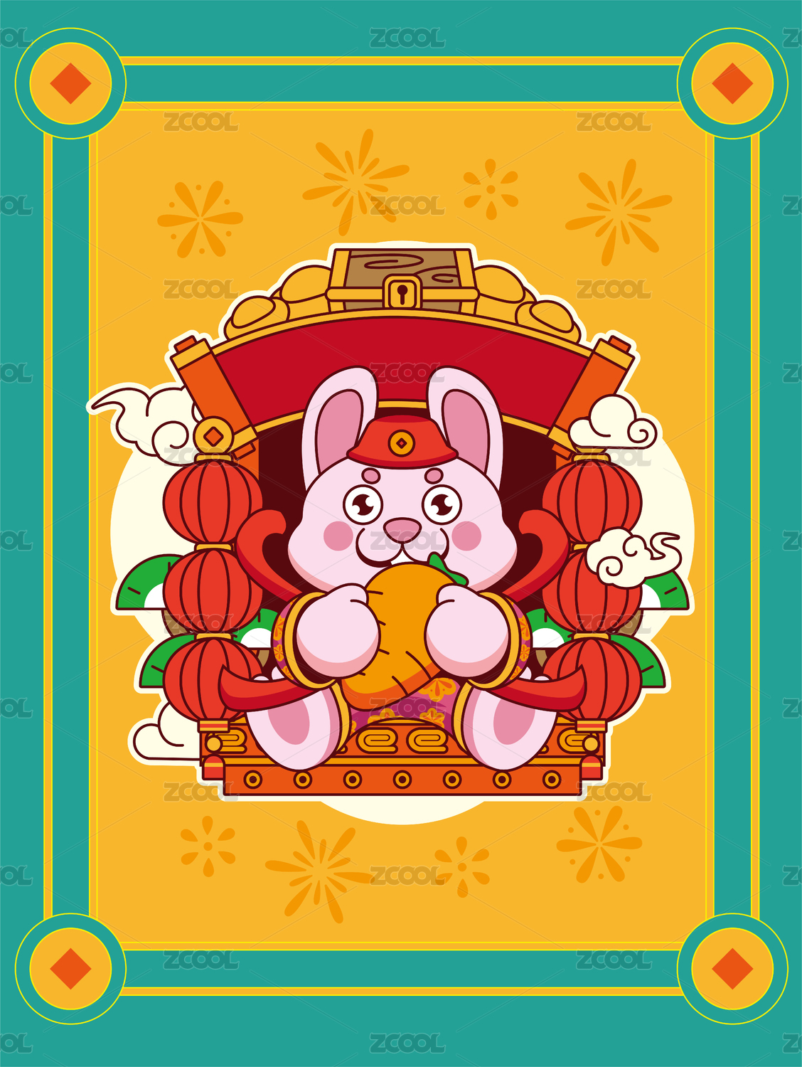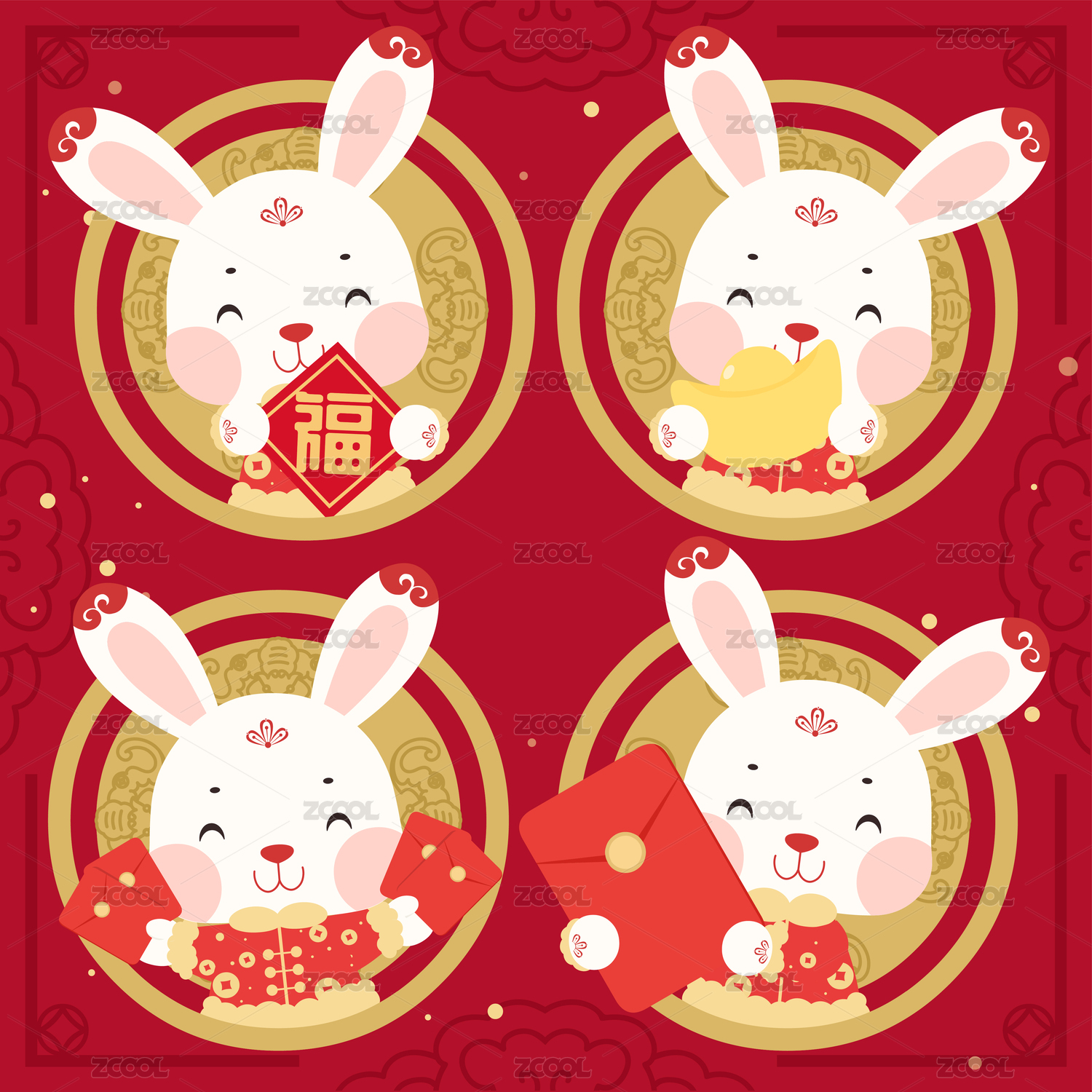 兔年,2023,新年,春节,兔子,可爱,描边,萝卜,如意,HECFOTR2023