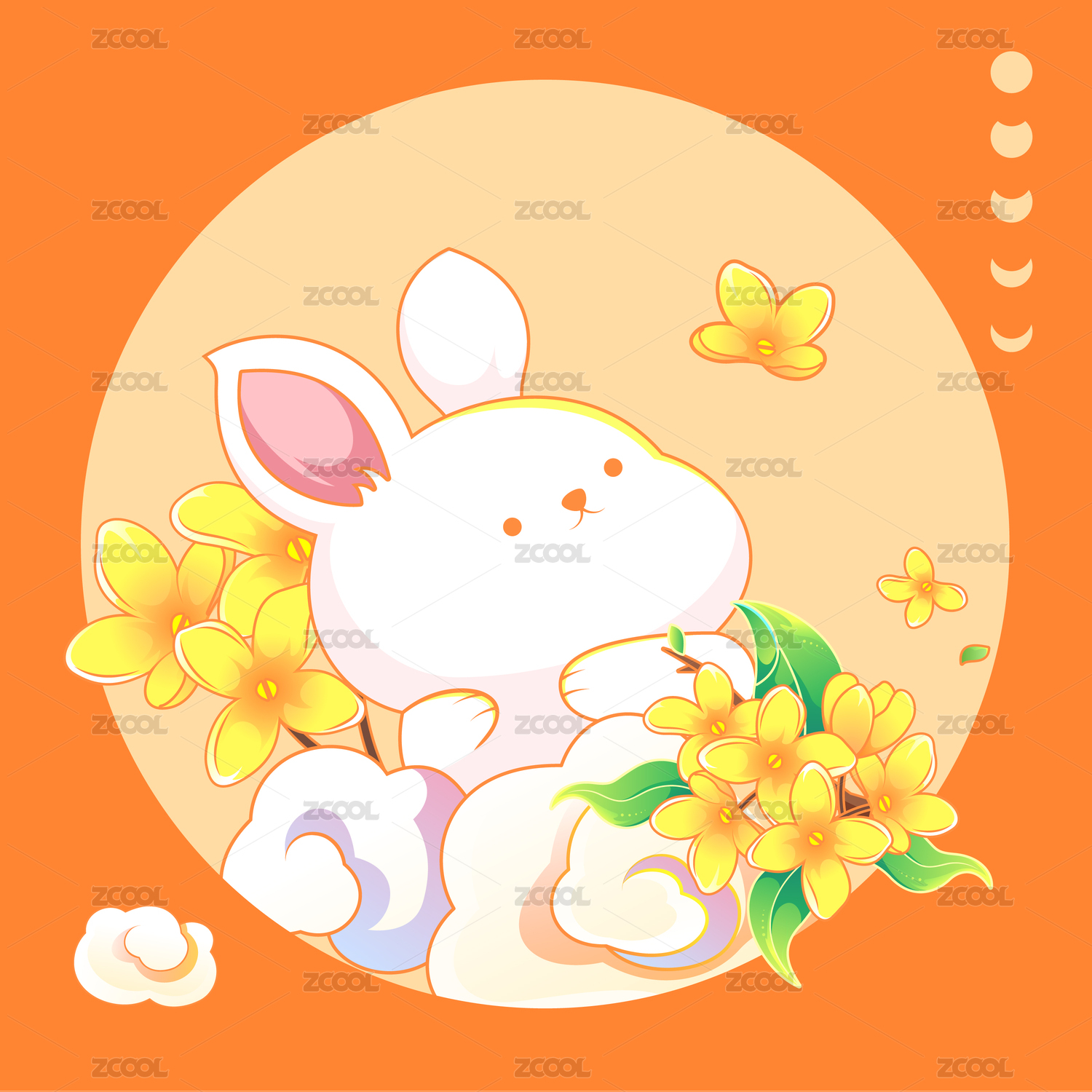 八月十五中秋玉兔桂花国风小清新矢量插画