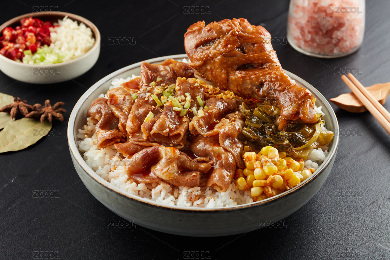 卤肉拼鸡腿拌饭