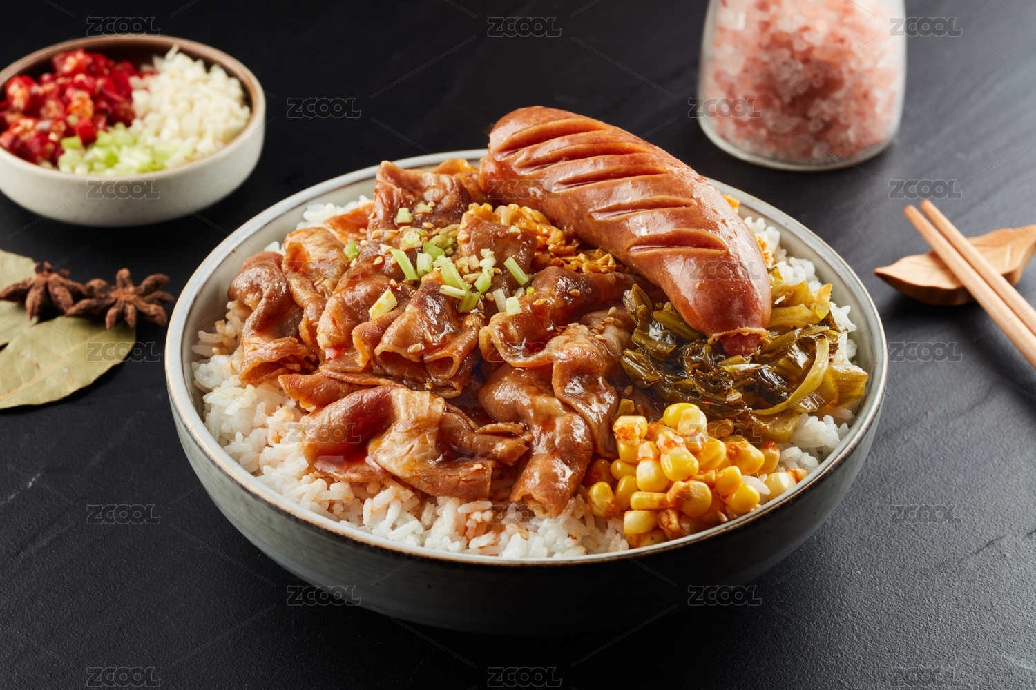 肥牛拼香肠饭