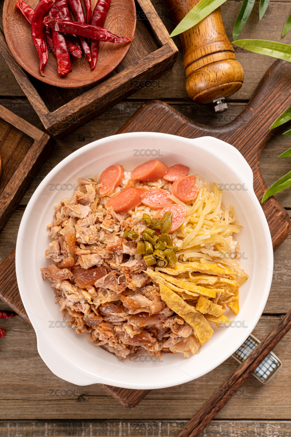 卤肉腊肠双拼拌饭