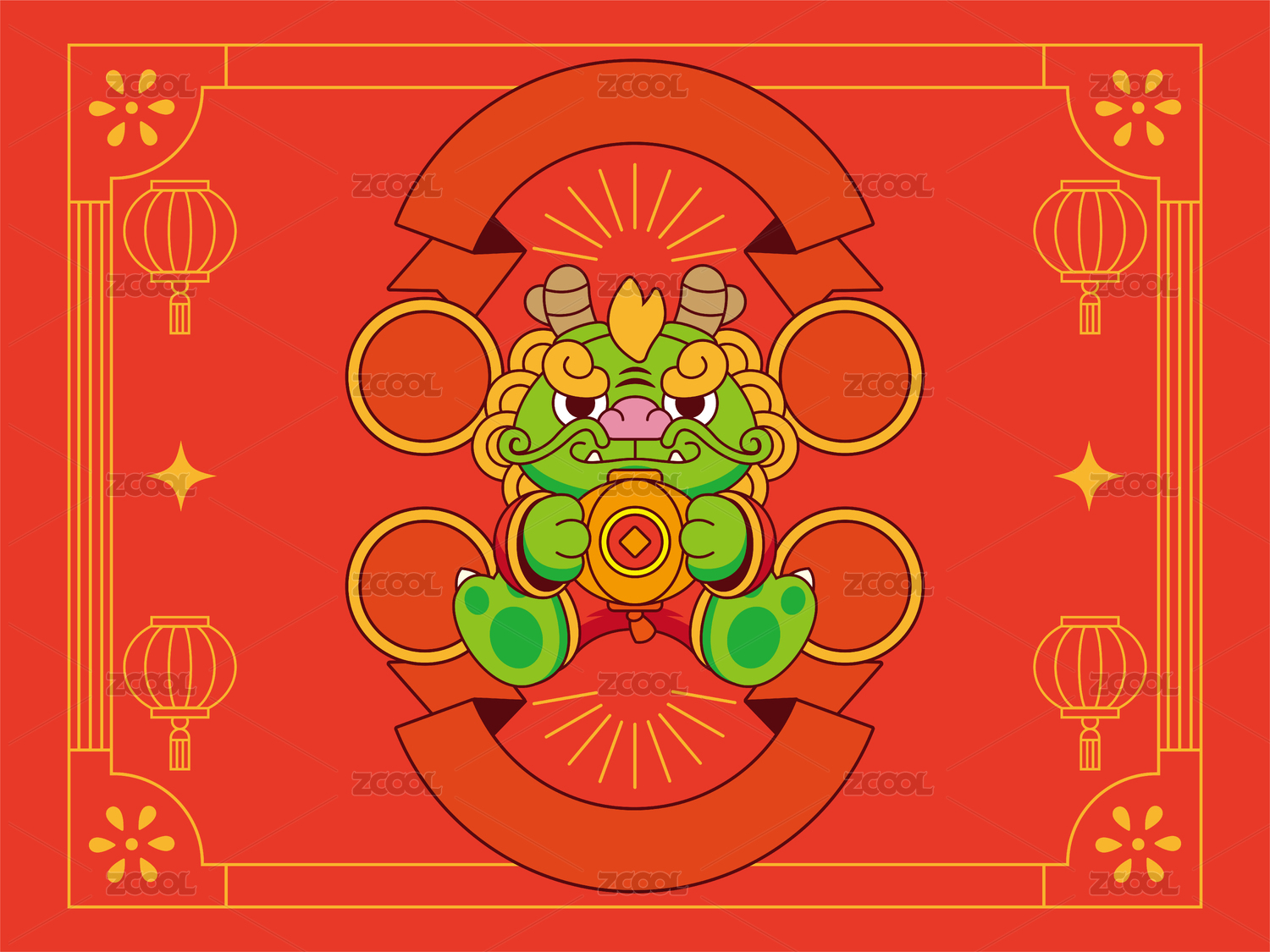 龙年装饰画新春海报龙蝴蝶祥云元素