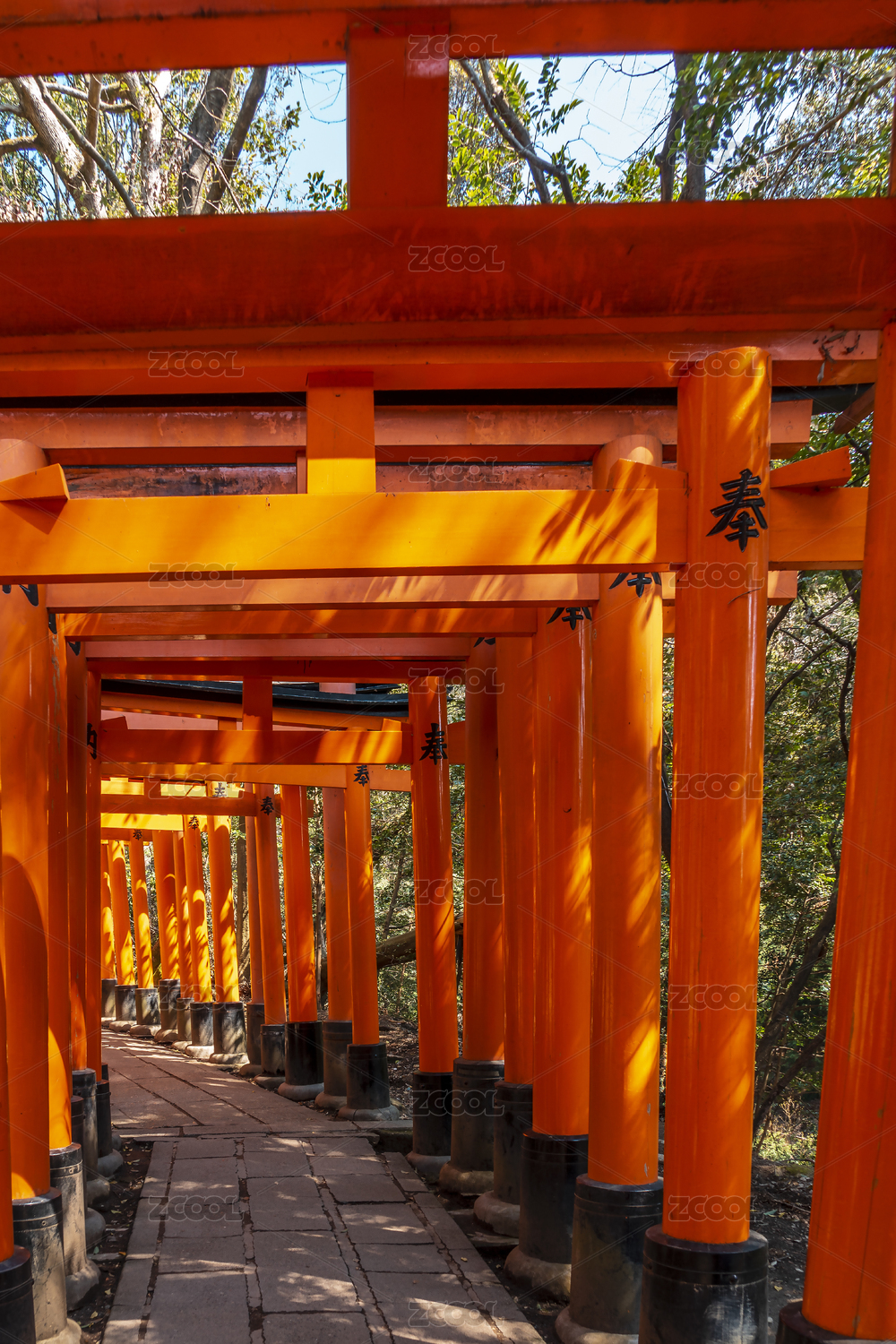 亚洲日本京都伏见稻荷大社鸟居建筑