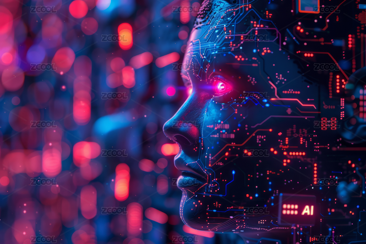 布满科技电路的机器人脸