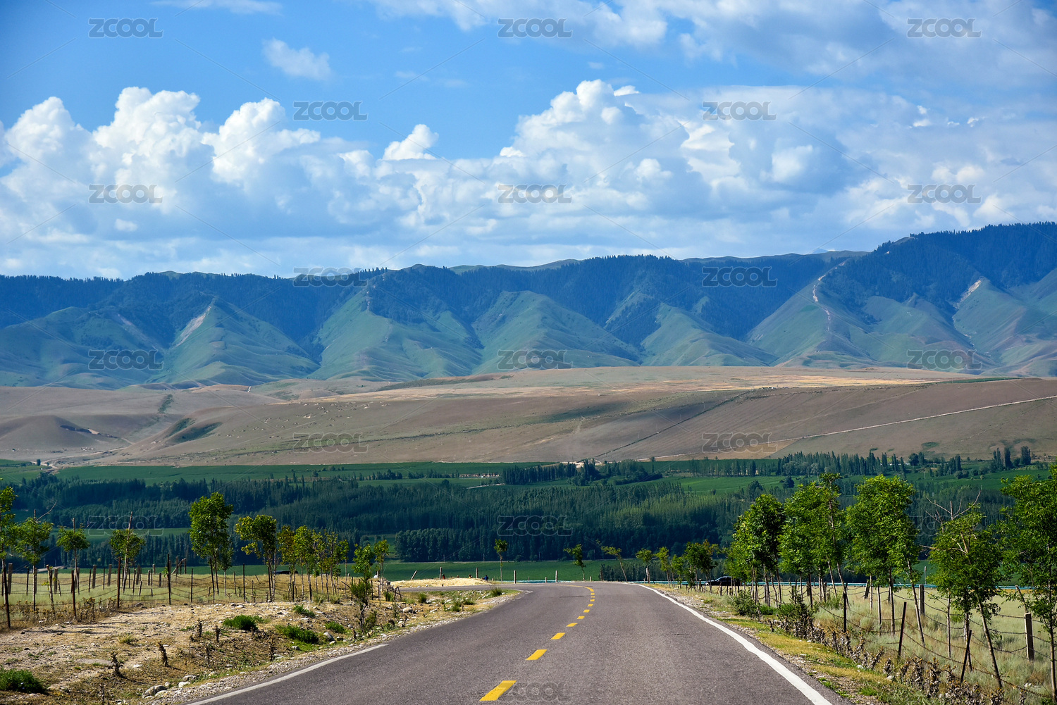 中国新疆特克斯喀拉峻风景区草原上公路弯道